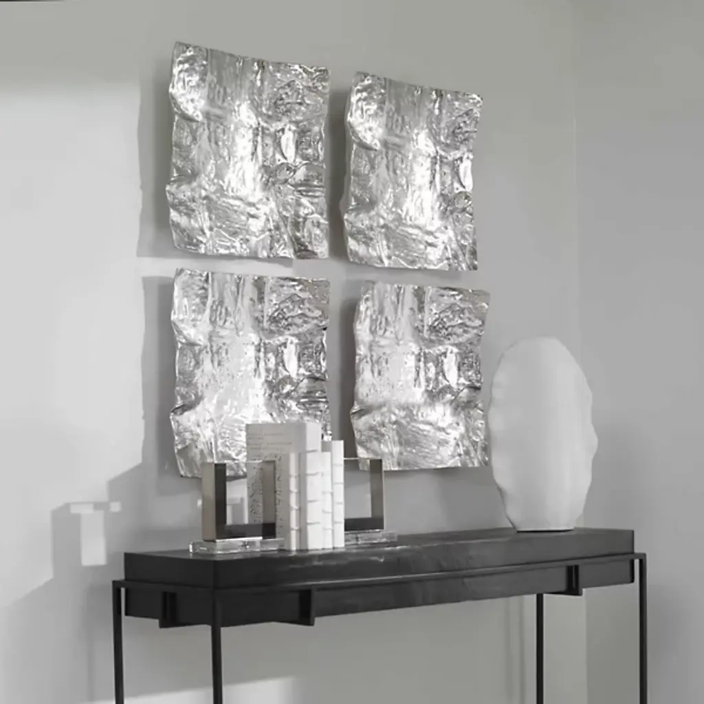 Add depth and dimension to your room's styling with the handcrafted Archive Wall Decor from Uttermost. This piece makes a splash against any wall. As a cast aluminum construction, the décor reveals itself as strong and sturdy. The handcrafted casting process gives the metal a heavy texture that awes with only a touch of light. The rich shimmering surface livens up the mood with an artful visual. A circular backplate provides a range of mounting options.