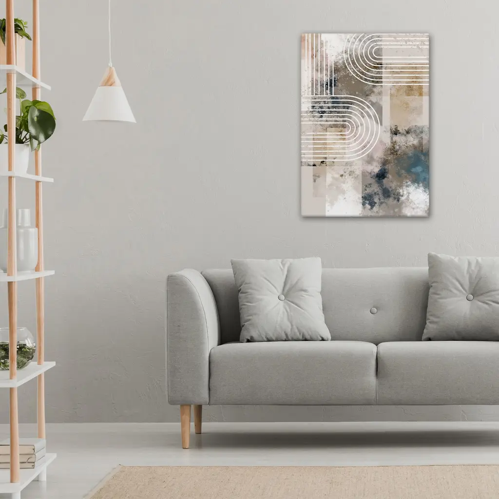Infuse your space with the essence of this trendy wall art titled "Archs Splash" by 1X. With archs rich colors of brown, blue, and white lines will complement any modern space. Designed and handcrafted in Chattanooga, Tennessee by Ready2HangArt, using eco-friendly practices. This piece arrives with hardware included and ready-to-hang on your wall for simple installation.