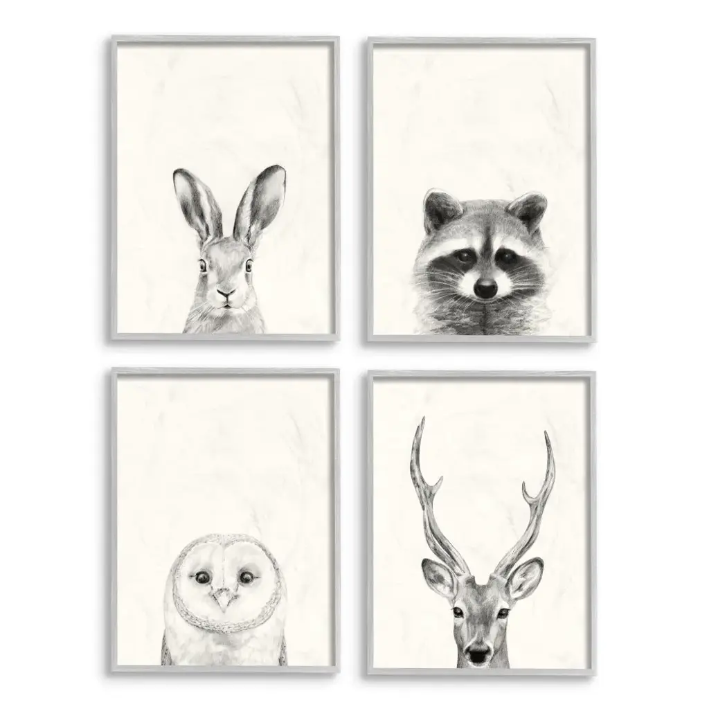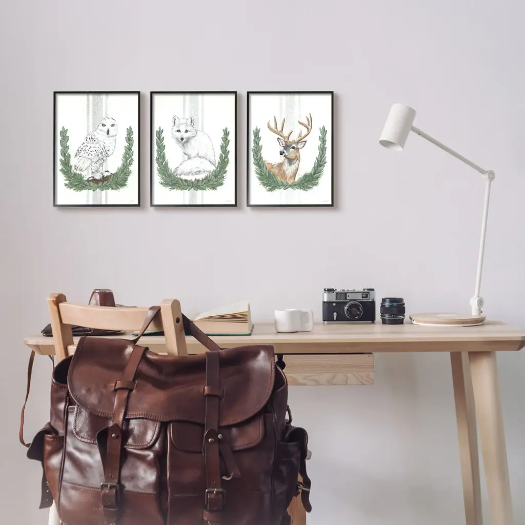 Arctic Animals Botanical Leaves Portrait Snowy Owl Deer Fox, 3Pc, Each 11 X 14