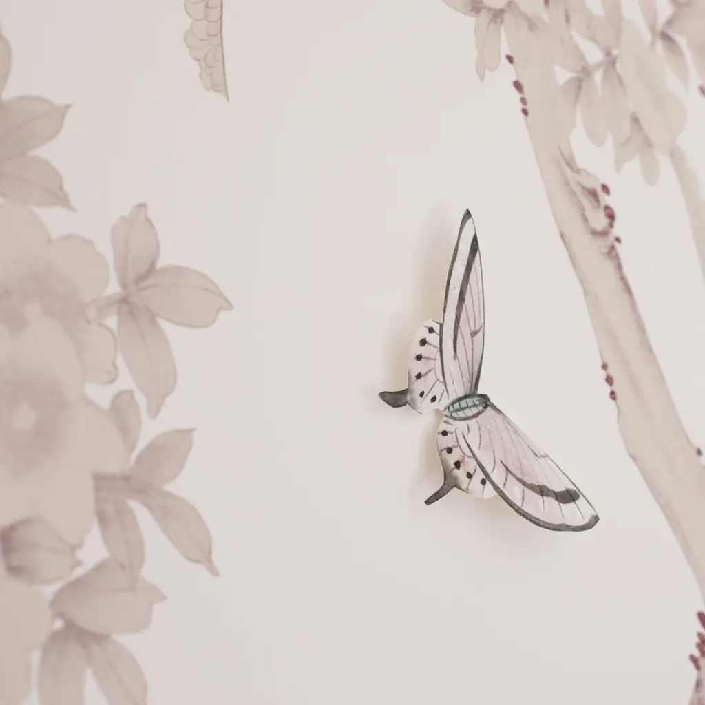 Hand-cut butterflies placed atop prints of delicately rendered trees add eye-catching depth to this chinoiserie-inspired diptych. The pictures arrive framed and ready to hang.
