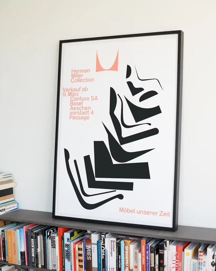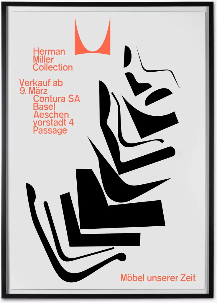 Herman Miller has a long tradition of styling its physical spaces with bold ads and graphics, a process it calls “environmental enrichment." Fans of the brand often ask where they can find these works of art, which prompted the company to reprint select pieces from its archives. One of the most frequent requests is for this poster by Armin Hofmann. The Swiss designer is recognized for his role in developing the International Typographic Style, a graphic design movement characterized by clarity and simplicity of form. In 1962, Herman Miller commissioned him to create this poster for the brand's European showrooms.