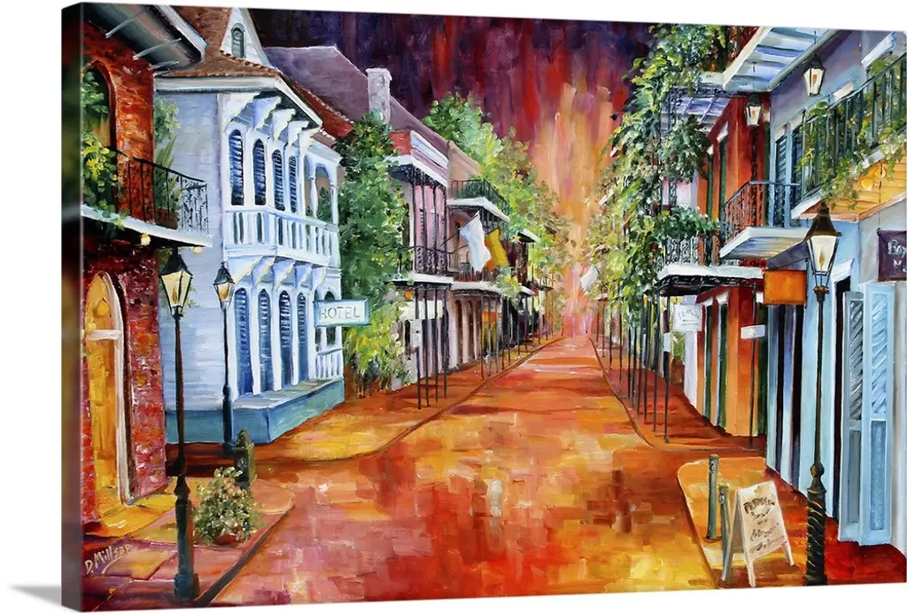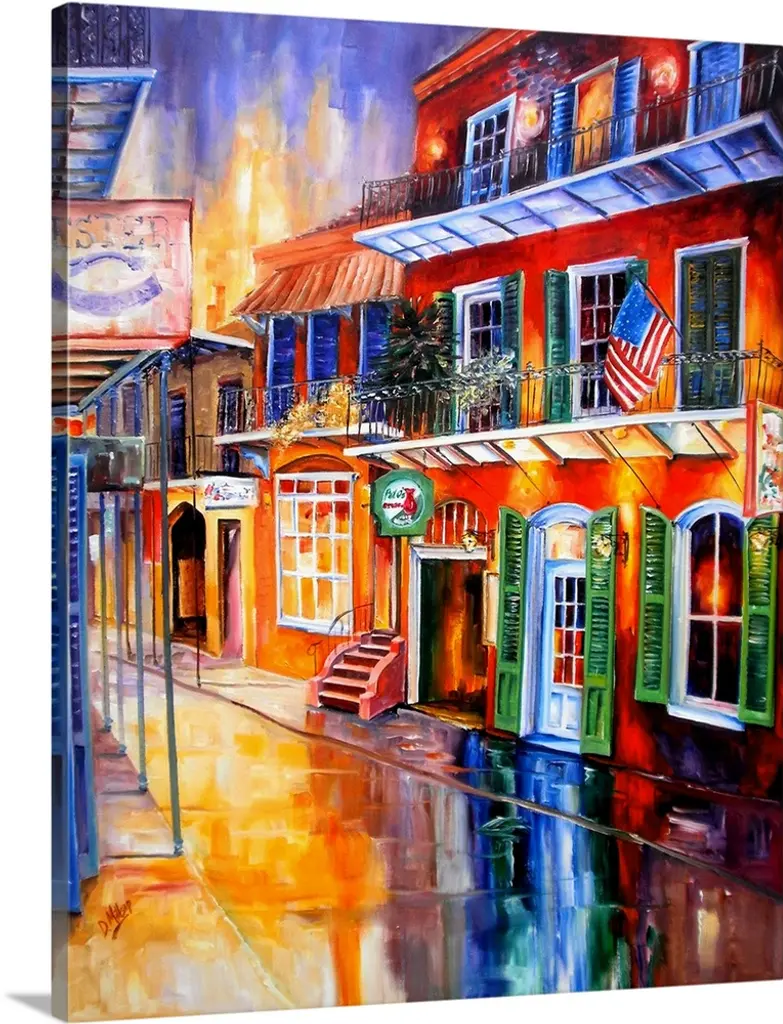 Cityscape painting focusing on Arnaud's Jazz Bistro in New Orleans, La.