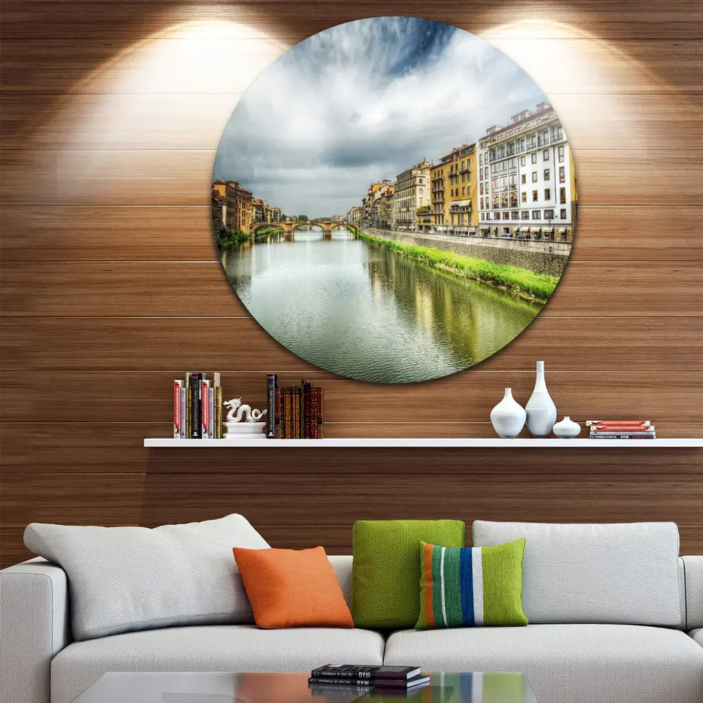 Arno River Under Dramatic Sky, Cityscape Round Wall Art, 23"