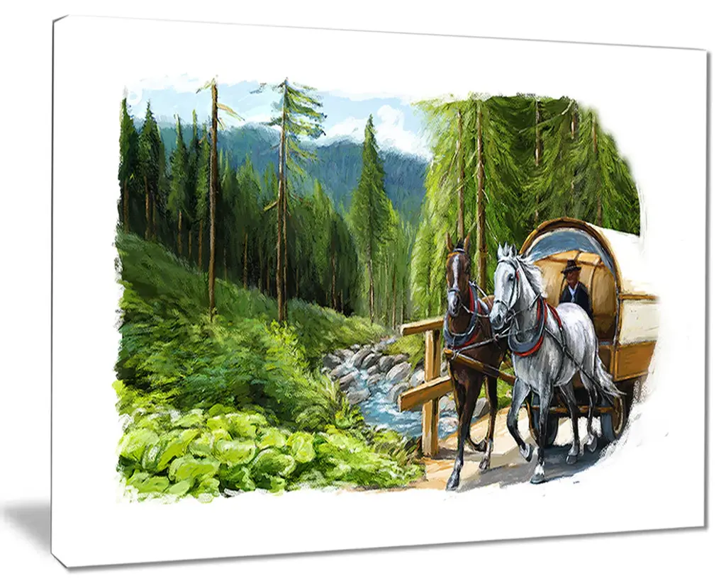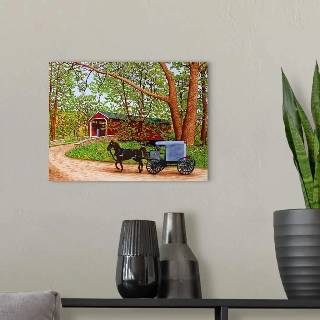 Contemporary artwork of a serene countryside scene.