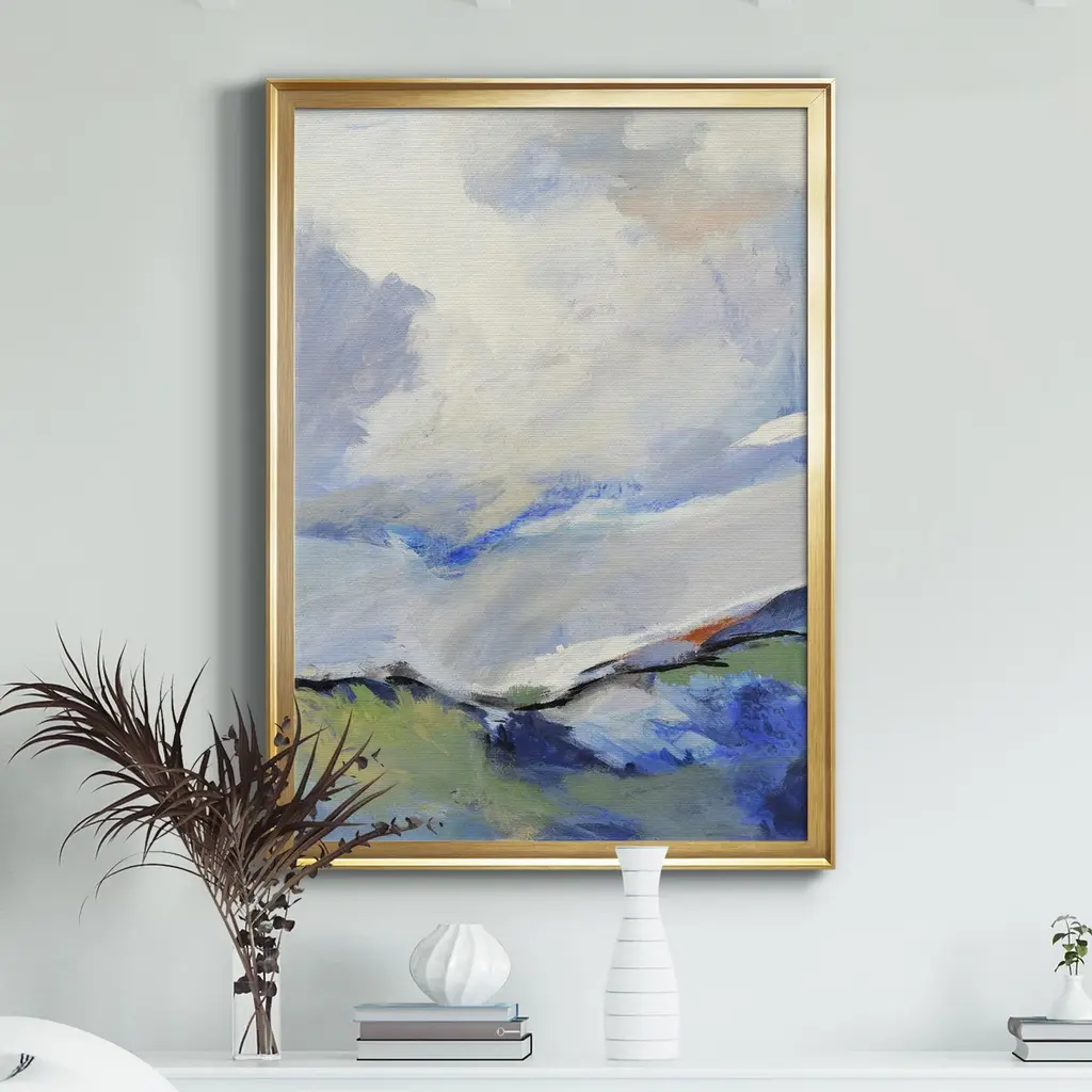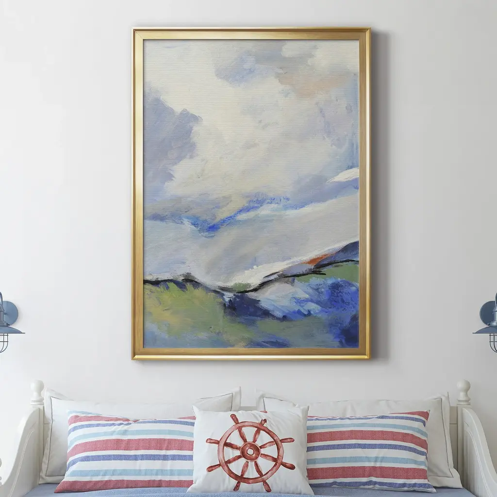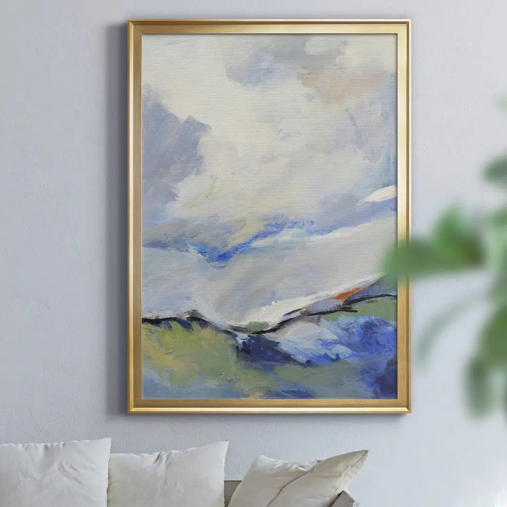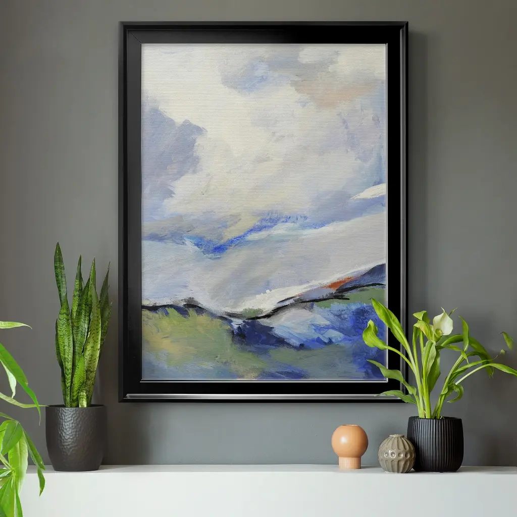 AROUND THE CLOUDS III Premium Framed Canvas - Ready to Hang A Premium Framed Canvas created to last. Framed in distressed wood and available in an array of sizes and colors Featuring a beveled a solid wood stretcher bar, each piece comes ready to hand 4 SIZES AVAILABLE 30.5''X42.5'' - Overall Size 26.5'X36.5'' - Overall Size 22''x30'' - Overall Size 18''x24'' - Overall Size Each piece is made to order. Each piece comes with hanging hardware. Made in the USA Ready to Hang Giclee Paper Print Acrylic Glass Beveled Matt Board