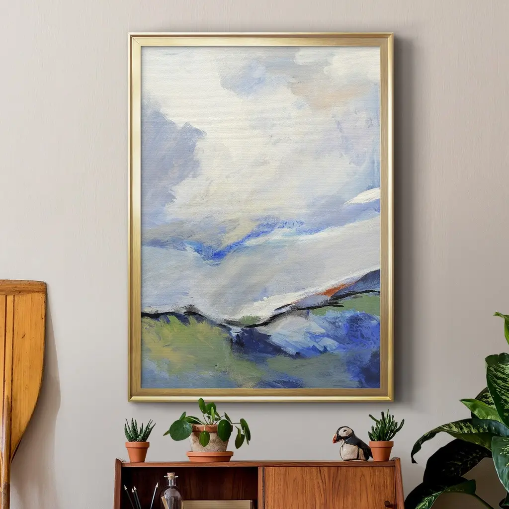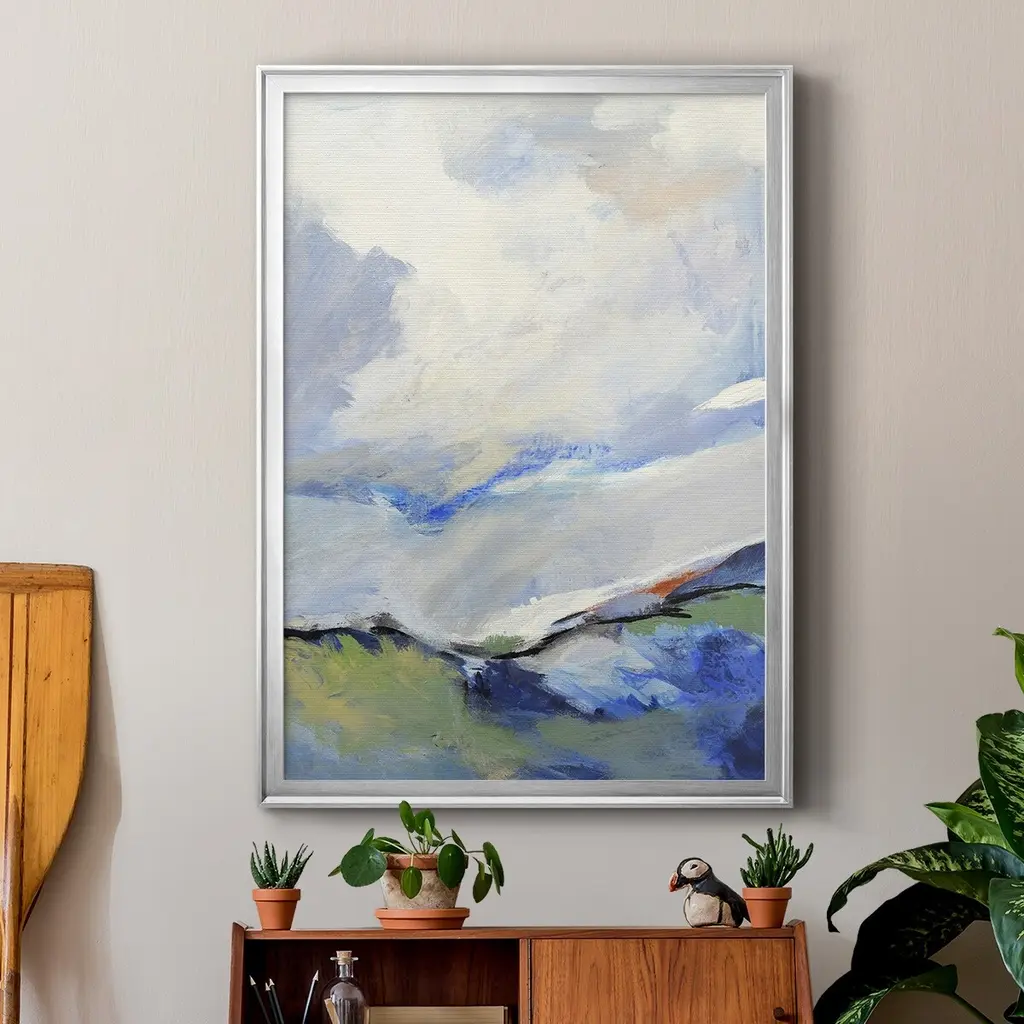 Around The Clouds III Premium Framed Print - Ready to Hang A Premium Framed Print created to last. Framed in distressed wood and available in an array of sizes and colors Featuring a beveled a solid wood stretcher bar, each piece comes ready to hand 4 SIZES AVAILABLE 30.5''X42.5'' - Overall Size 26.5'X36.5'' - Overall Size 22.5''x30.5'' - Overall Size 18.5''x24.5'' - Overall Size Each piece is made to order. Each piece comes with hanging hardware. Made in the USA Ready to Hang