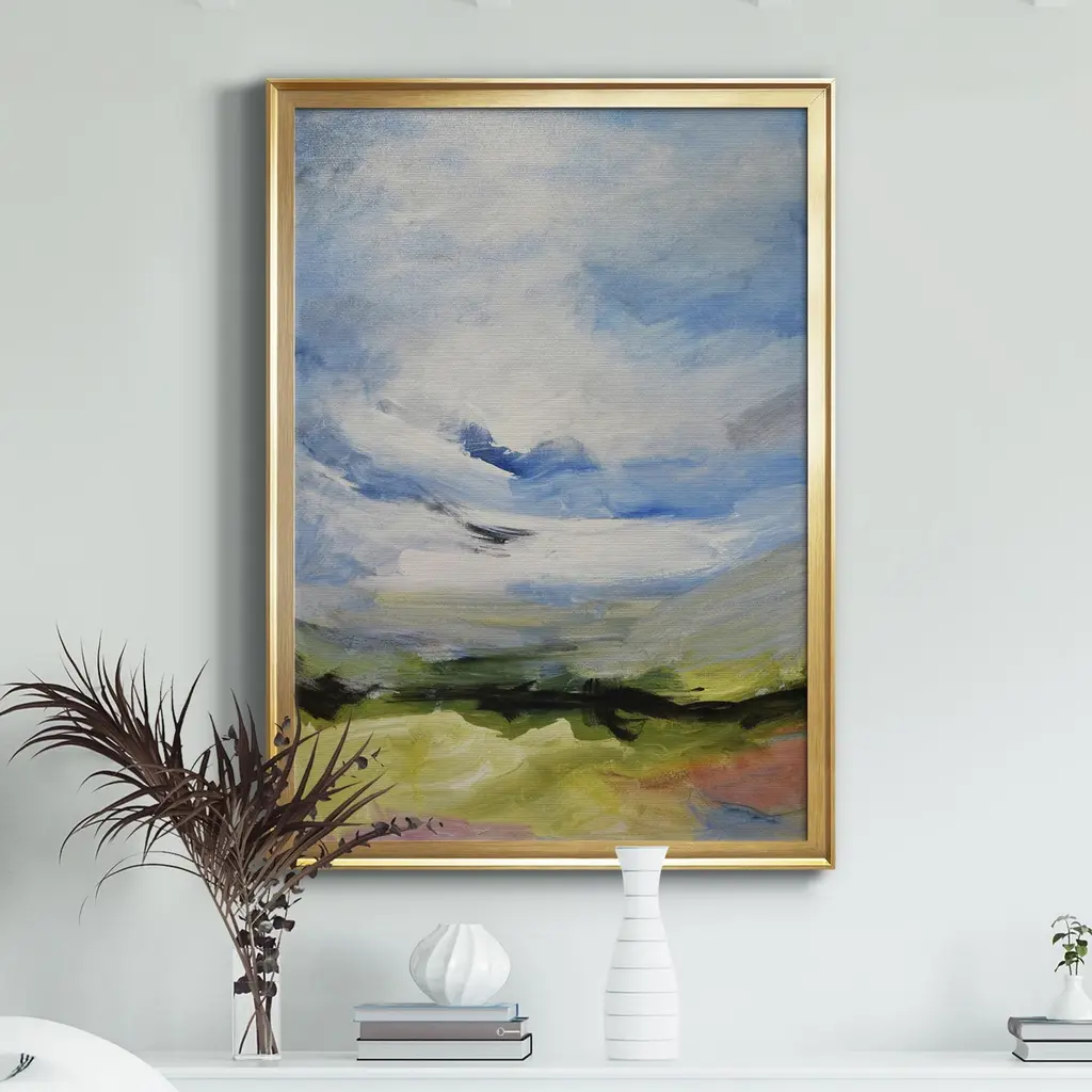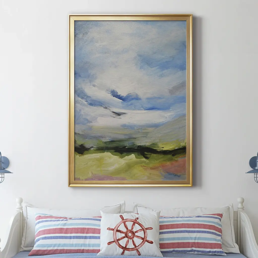 AROUND THE CLOUDS IV Premium Framed Canvas - Ready to Hang A Premium Framed Canvas created to last. Framed in distressed wood and available in an array of sizes and colors Featuring a beveled a solid wood stretcher bar, each piece comes ready to hand 4 SIZES AVAILABLE 30.5''X42.5'' - Overall Size 26.5'X36.5'' - Overall Size 22''x30'' - Overall Size 18''x24'' - Overall Size Each piece is made to order. Each piece comes with hanging hardware. Made in the USA Ready to Hang Giclee Paper Print Acrylic Glass Beveled Matt Board