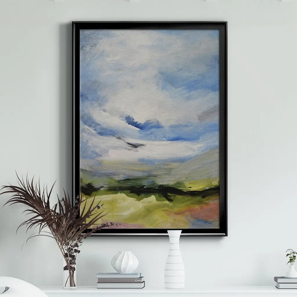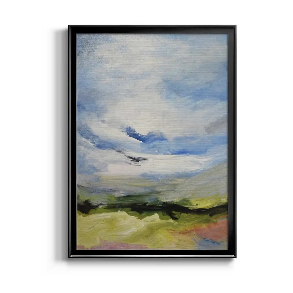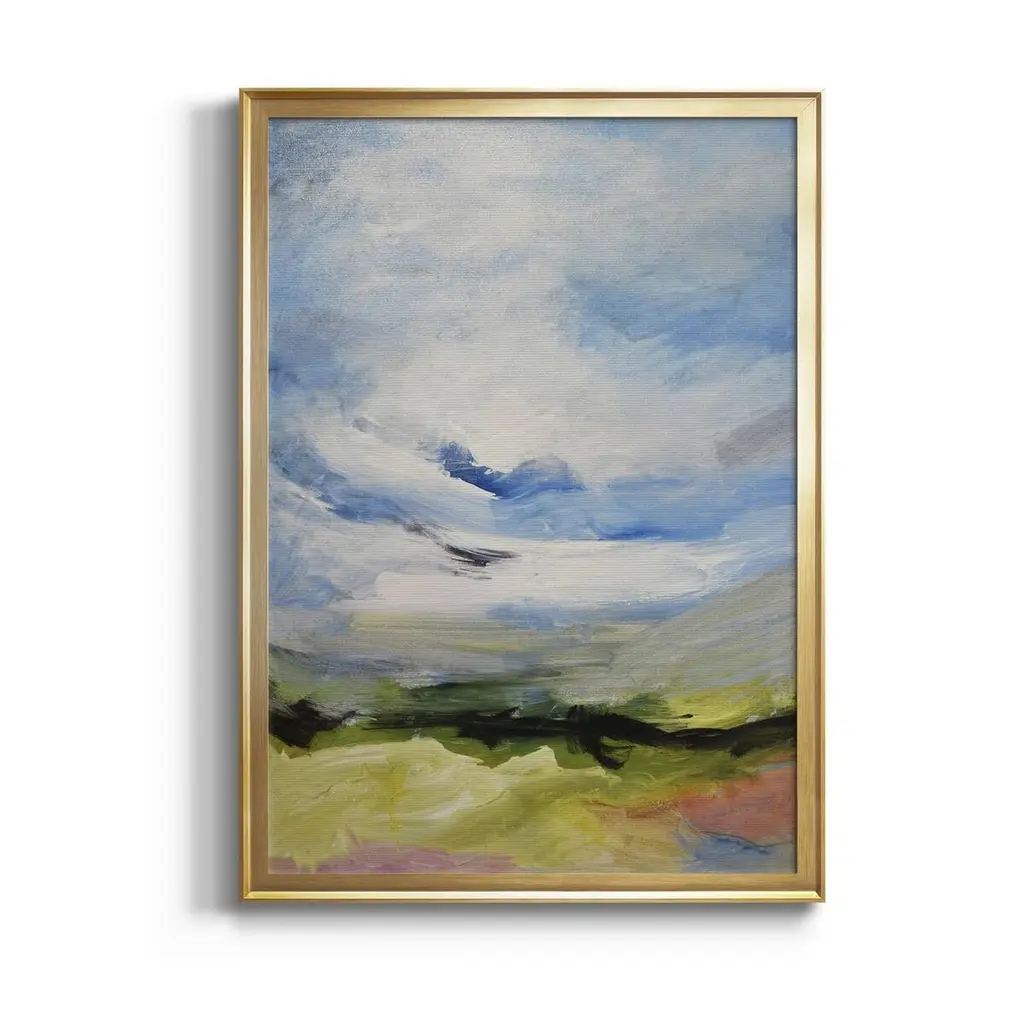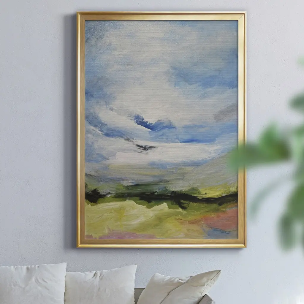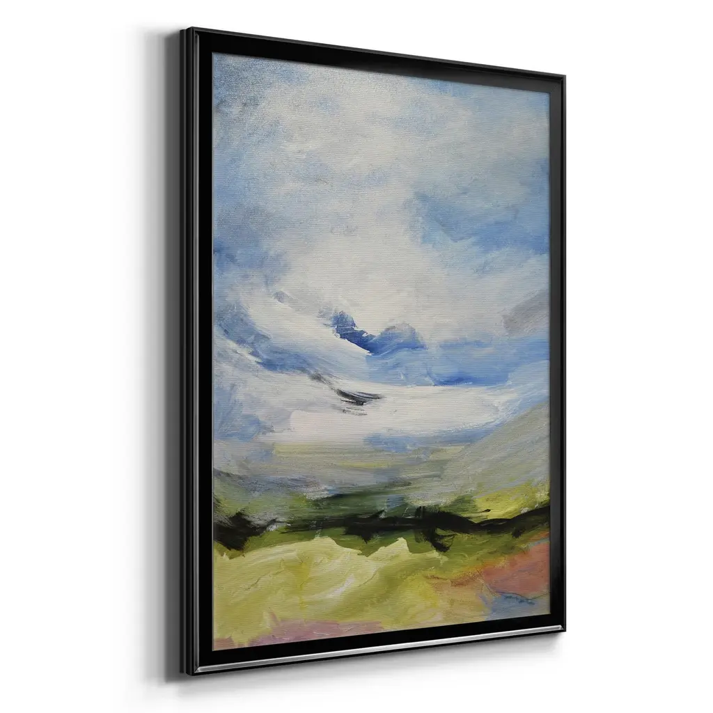 AROUND THE CLOUDS IV Premium Framed Canvas - Ready to Hang A Premium Framed Canvas created to last. Framed in distressed wood and available in an array of sizes and colors Featuring a beveled a solid wood stretcher bar, each piece comes ready to hand 4 SIZES AVAILABLE 30.5''X42.5'' - Overall Size 26.5'X36.5'' - Overall Size 22''x30'' - Overall Size 18''x24'' - Overall Size Each piece is made to order. Each piece comes with hanging hardware. Made in the USA Ready to Hang Giclee Paper Print Acrylic Glass Beveled Matt Board