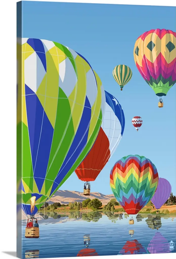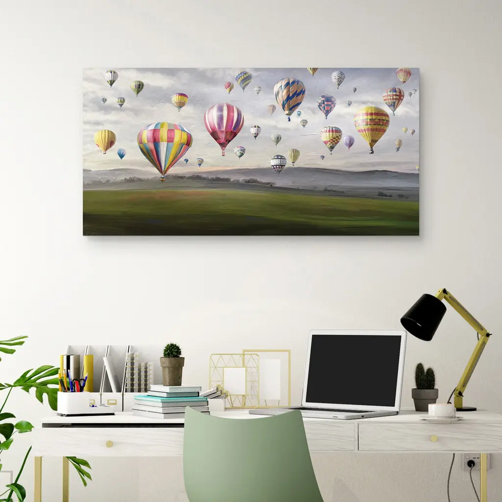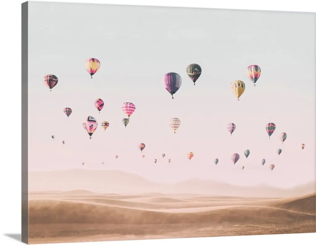 Infuse any space with the essence of this trendy framed print wall art titled "Around the World" by Kathrin Pienaar. The piece features a group of hot air balloons filling up the sky the dreamy pink and blue skies that will complement any modern space. Handcrafted in Chattanooga, Tennessee, by Ready2HangArt using a locally sourced artist print, finished with a rear hanger for simple installation.