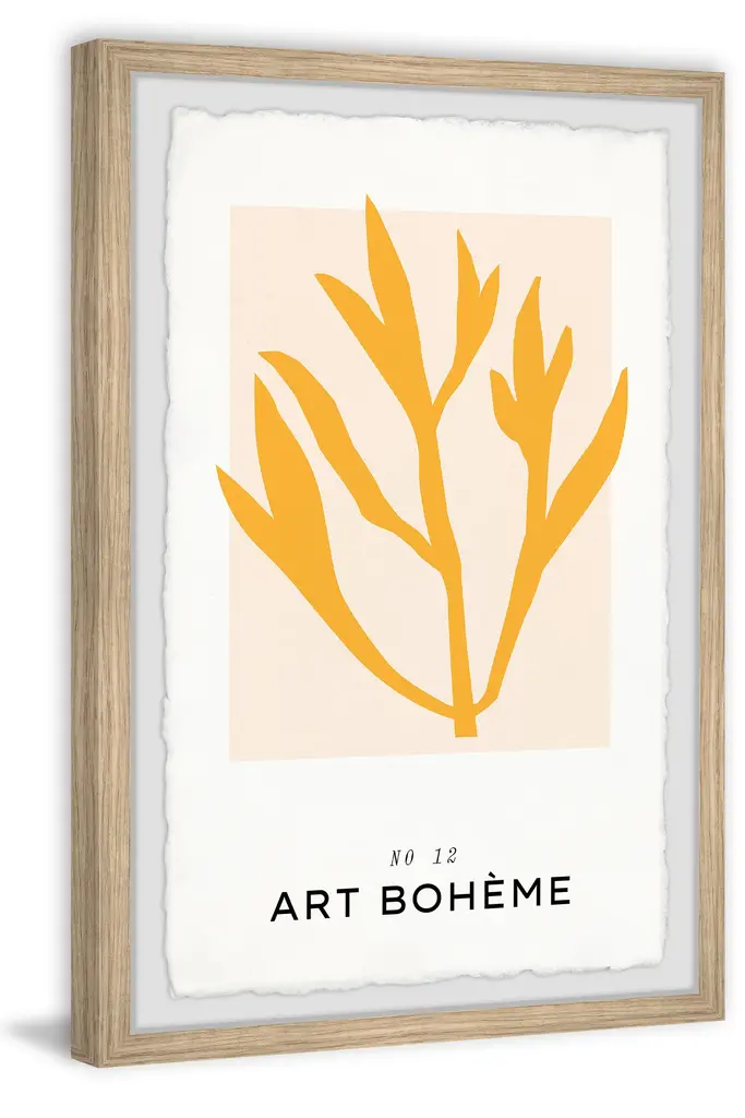 Bring plant life into your space with this drawing print that features a bright orange leafy plant, and text that says "Art Boheme." Proudly printed in the USA, this piece is printed on high quality archive paper and professionally hand-framed. With wall-mounting hooks included, this artful accent is ready to hang up as soon as it reaches your front door.Top quality Giclee print on high resolution Archive PaperHand cut deckled edgesHigh quality durable non-warping frameFinished under shatter resistant plexiglassArrives ready to hangIncludes a certificate of authenticityPrinted in the USA
