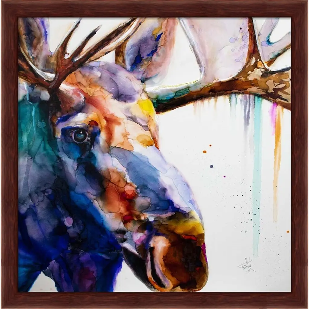 Somewhat A Moosing by Art by Leslie Franklin is a high quality piece of framed artwork. The finished size of this piece is 13.25" X 13.25". It has a Mahogany Deep Box frame and is finished with high quality glass. 100% Satisfaction Guaranteed.