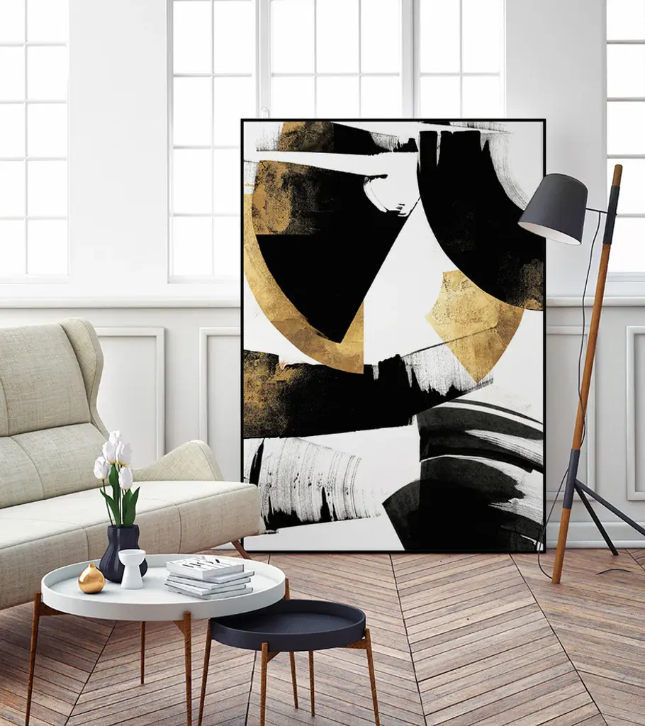 Your ready to hang artwork is printed on canvas then stretched and mounted to a 2-inch thick - hand stained black wood frame. Arrives at your door complete with an easy to use self-leveling hangking kit.