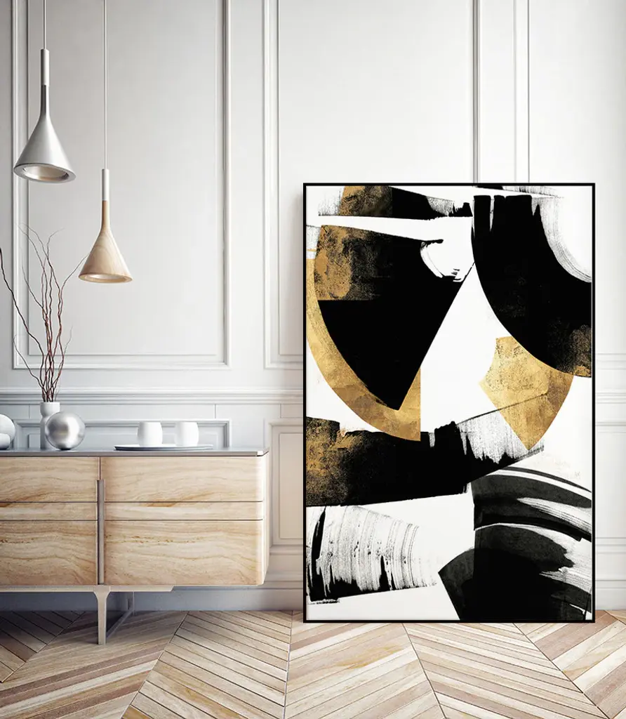 Your ready to hang artwork is printed on canvas then stretched and mounted to a 2-inch thick - hand stained black wood frame. Arrives at your door complete with an easy to use self-leveling hangking kit.