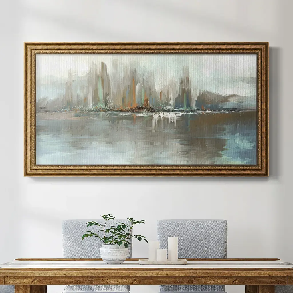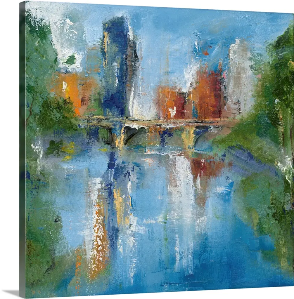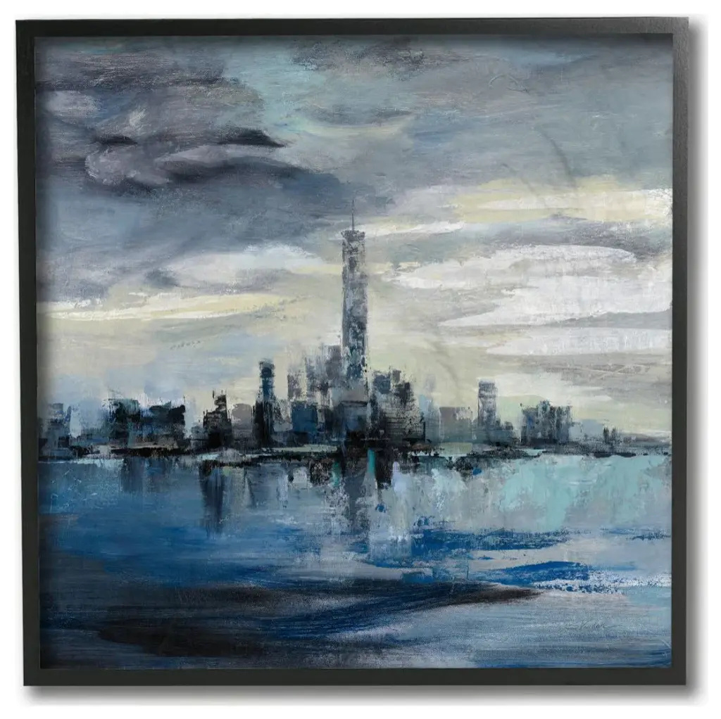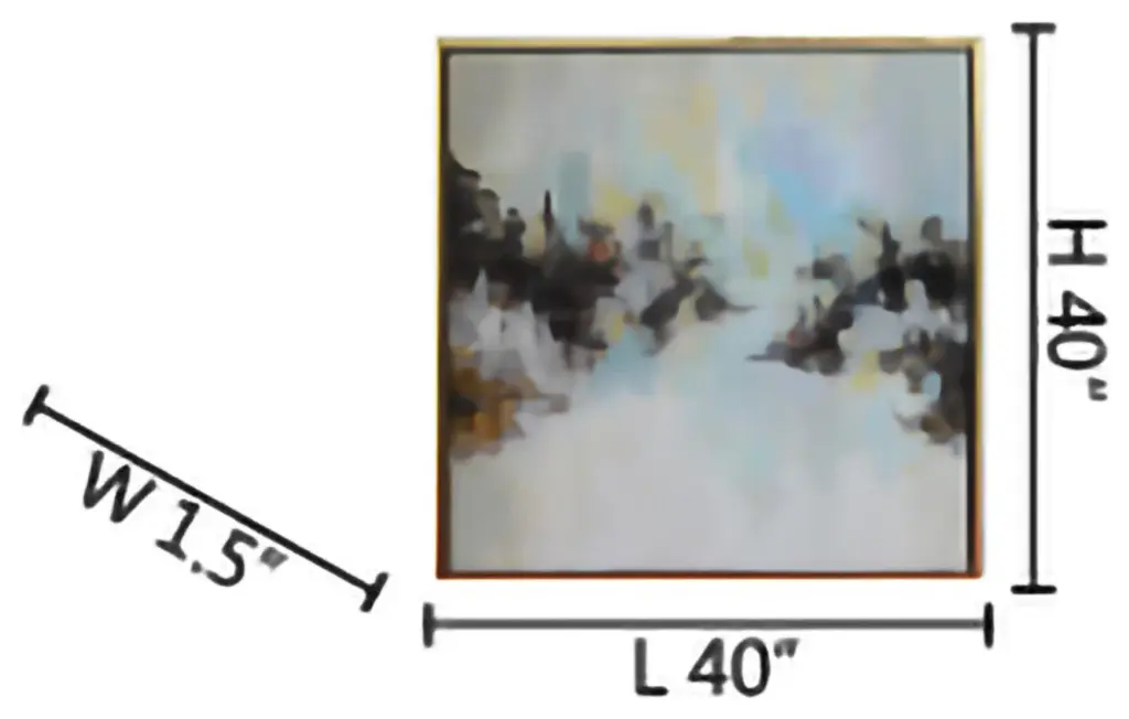 This handmade oil painting has a variety of colors that will bring your room together. Each painting is made unique per piece and is not printed on. This art piece has beautiful colors of blue, black, gold, and white. This unique design will definitely create a pop of color to your room. This wall art has hanging hooks provided on the back and golden wood frame as well.
