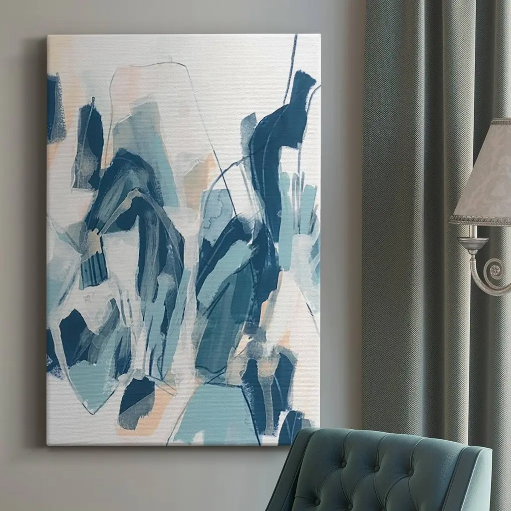 This abstract painting features a calming and serene color palette of blues and grays. The artist''s use of texture and layering creates a sense of depth and movement, evoking a tranquil atmosphere. It would be perfect for adding a touch of modern art to a living room, bedroom, or office.