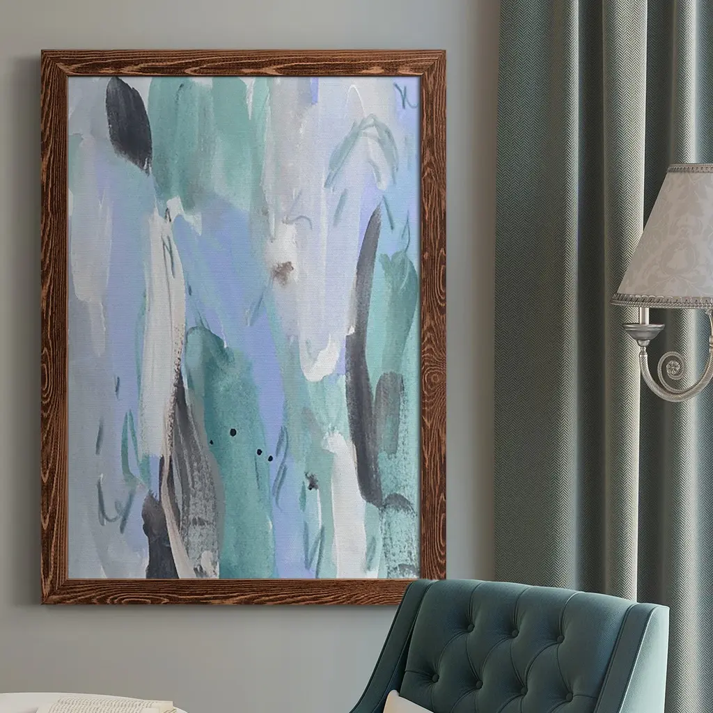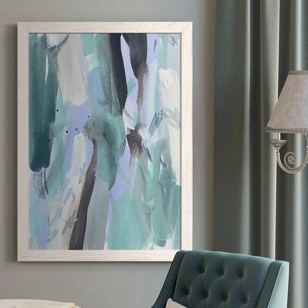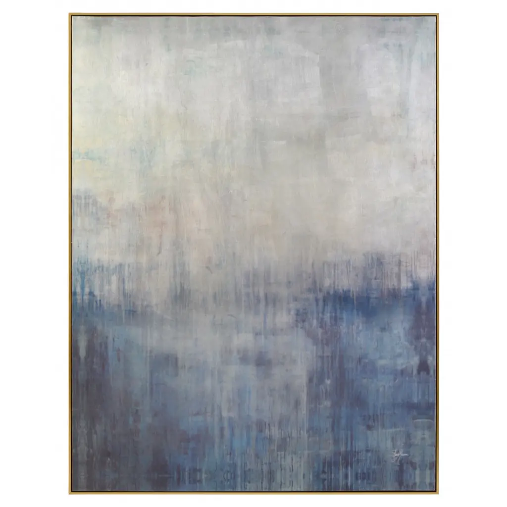 This abstract painting features a calming and serene color palette of blues and grays. The artist''s use of texture and layering creates a sense of depth and movement, evoking a tranquil atmosphere. It would be perfect for adding a touch of modern art to a living room, bedroom, or office.