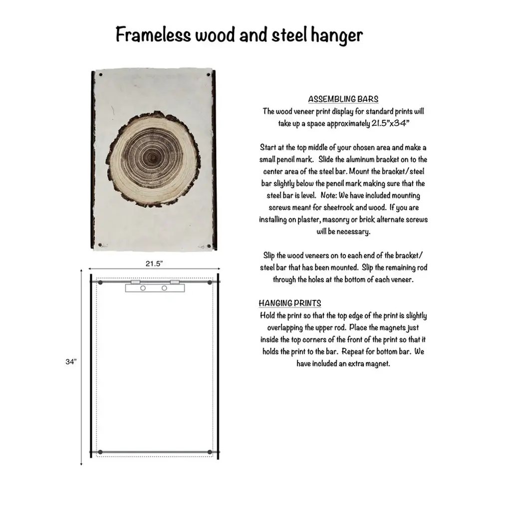 Art Print Frameless Wood + Steel Hangers (Size + Finish Options)
