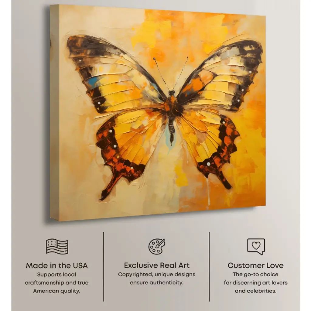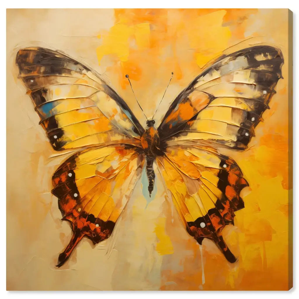 Art Remedy Golden Ochre Butterfly Ii Elegant Butterfly Wall Art, 40" X 40", Gallery Wrapped