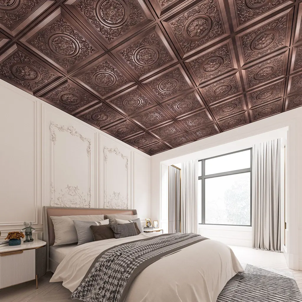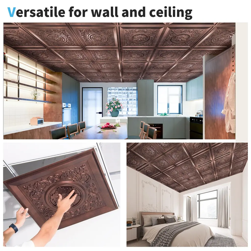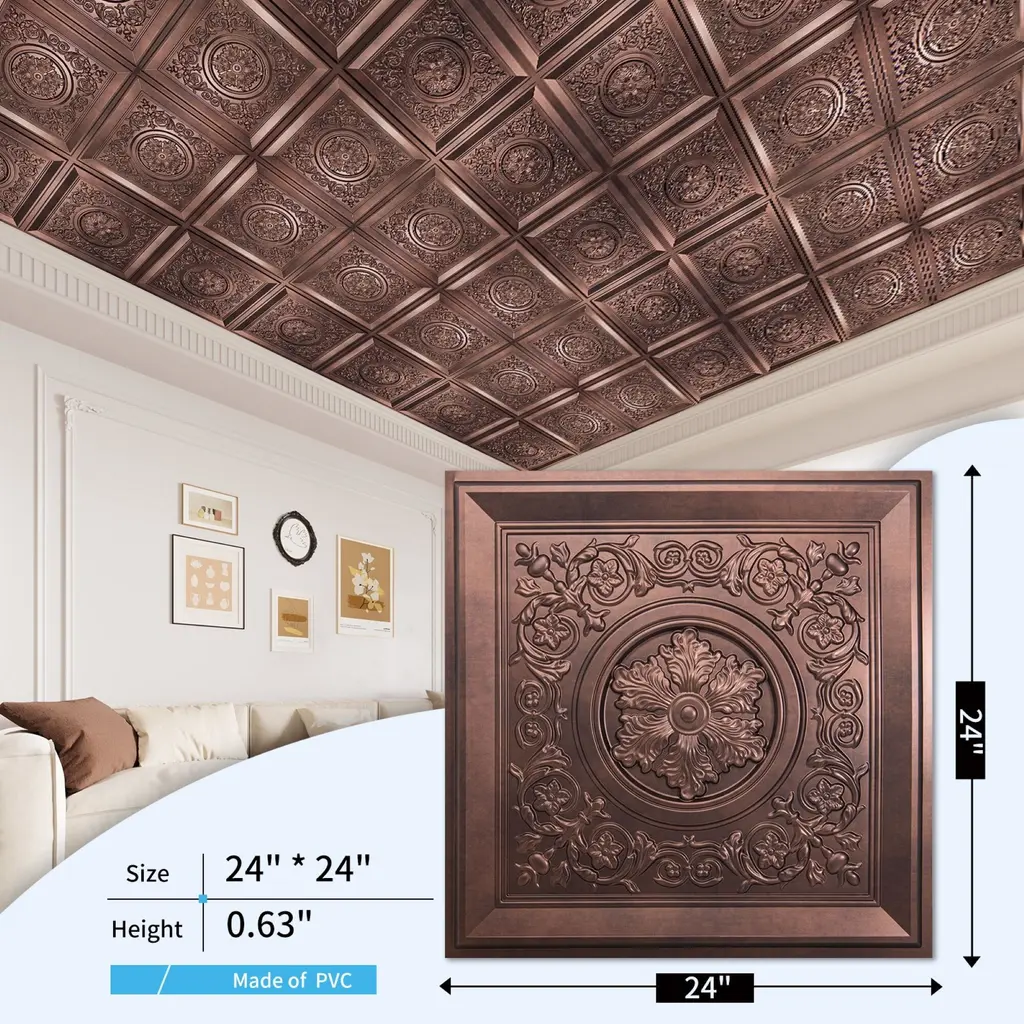 Art3d 24"x24" Drop Ceiling Tiles, Waterproof Ceiling Panels, Vintage Style 3D Wall Panels,12-Pack - Antique Copper