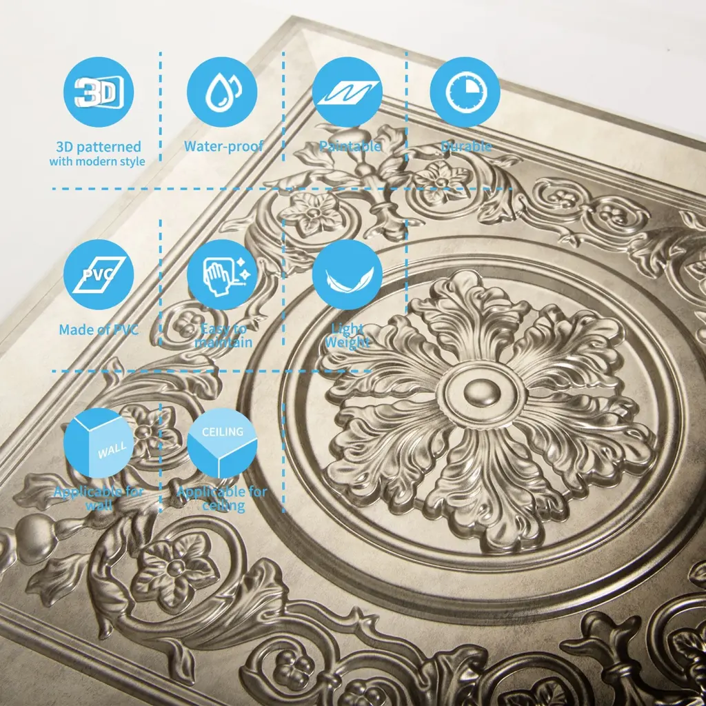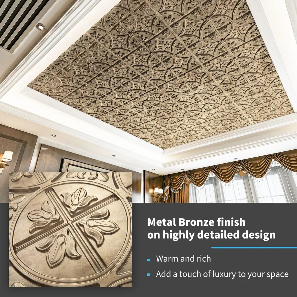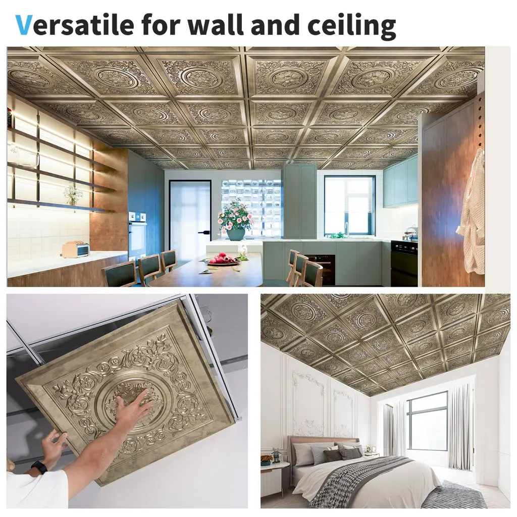 Art3d 24"x24" Drop Ceiling Tiles, Waterproof Ceiling Panels, Vintage Style 3D Wall Panels,12-Pack - Antique Gold