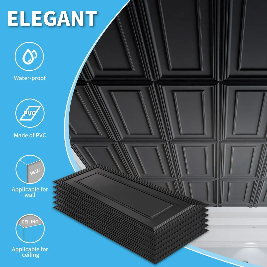 Art3d 3D Pvc Drop Ceiling Tiles, 3D Wall Panels, 2X4 Ft. (Pack Of 12) - Black