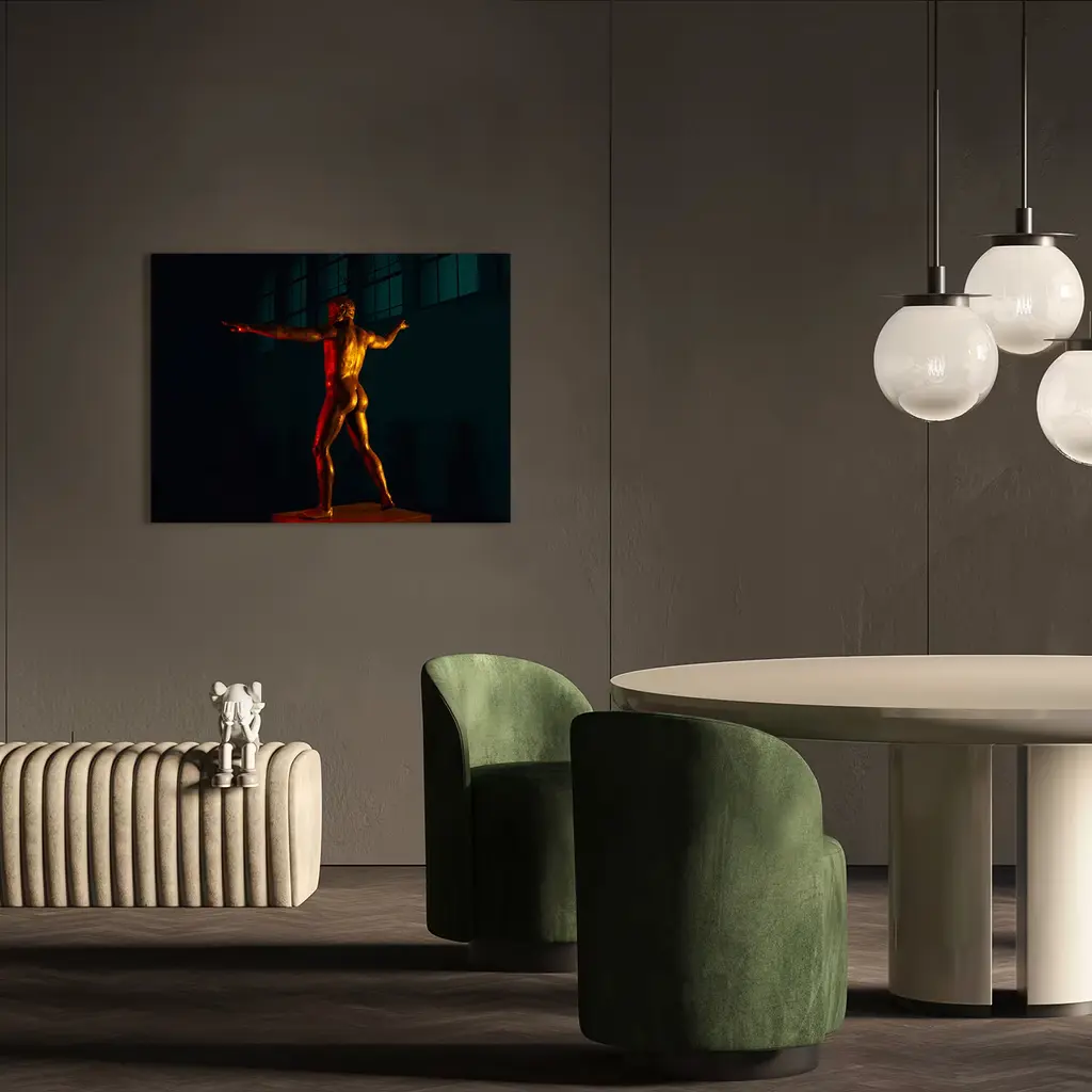 Treasures from the sea is a photographic project portraying the most iconic Ancient Greek bronzes found in the Mediterranean sea in the last century. With the use of the best technology available in contemporary photography, the artist is presenting a new and personal perspective of these treasures of the sea. The lighting set-up is designed to enhance the three-dimensional value of this group of statues and to deliver a theatrical vision of them. Limited Edition of 10. Frame not included.