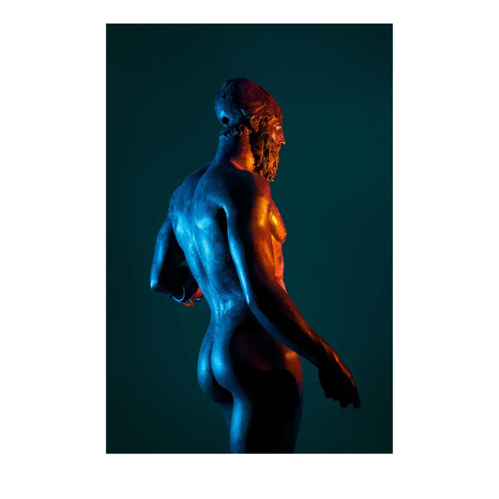 Treasures from the sea is a photographic project portraying Ancient Greek bronzes found in the Mediterranean sea in the last century. With the use of the best technology available in contemporary photography, the artist is presenting a new and personal perspective of these incredible treasures of the sea. The lighting set-up is designed to enhance the three-dimensional value of this group of statues and to deliver a theatrical vision of them. This is a Limited Edition of 10. Frame not included.