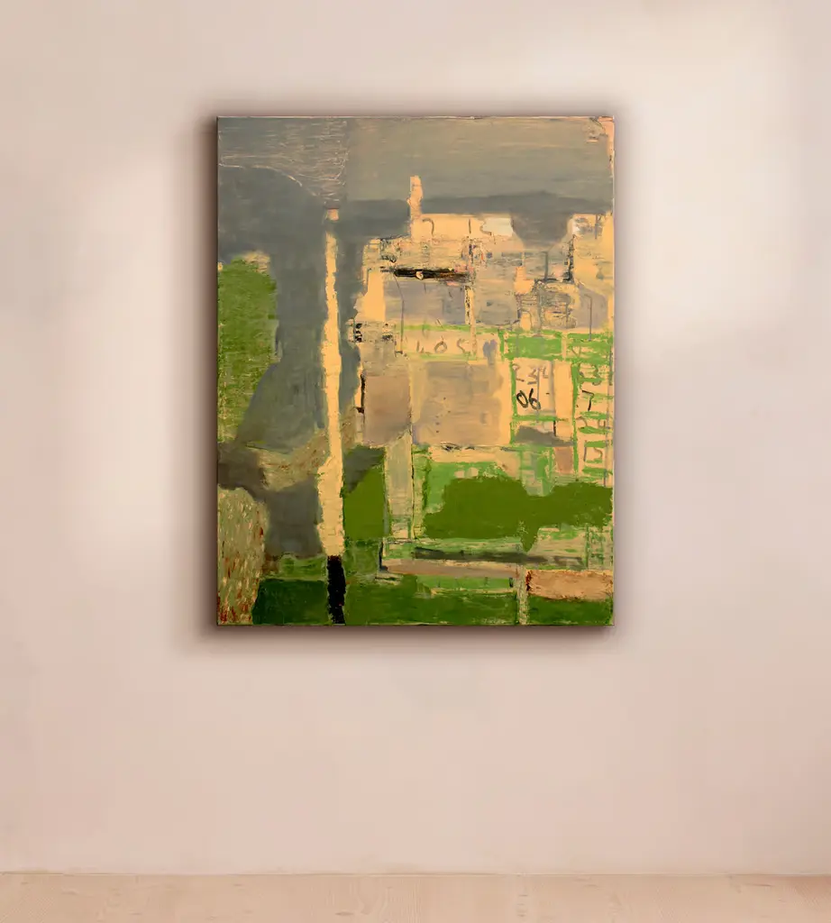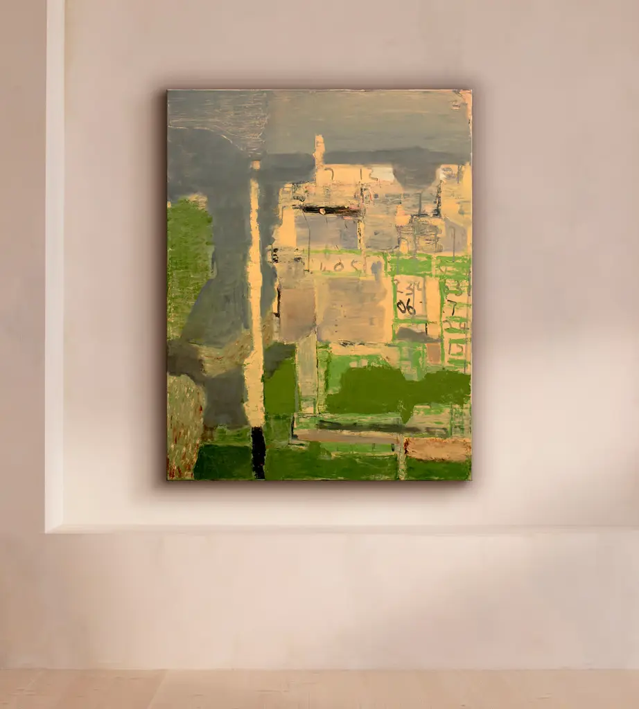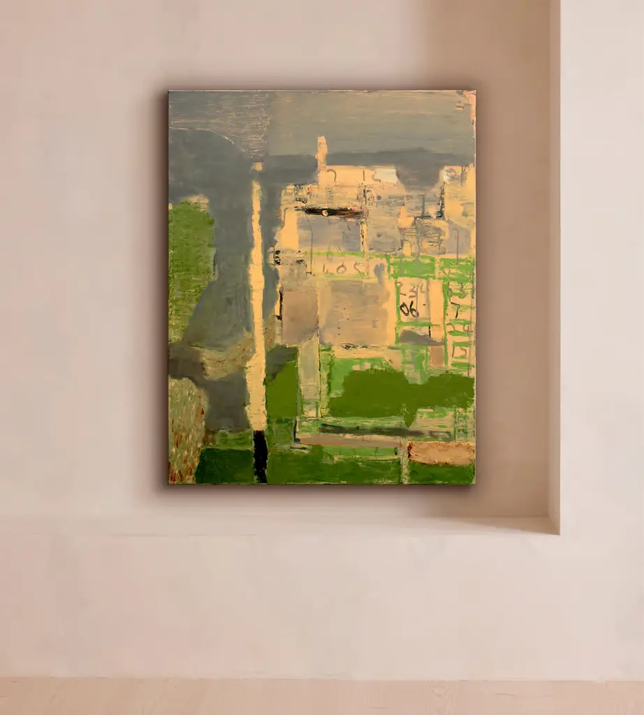 A mix of Cornish-inspired green and grey tones see the artist explore the romance of Tintagel in this original oil landscape on canvas. Based in Northumberland, Andrew Crane is an abstract painter that uses letters, numbers and shapes to create a 'unique visual language'. His bold experimentation with materials often includes the use of items he picks up in hardware shops, like cement or plaster.