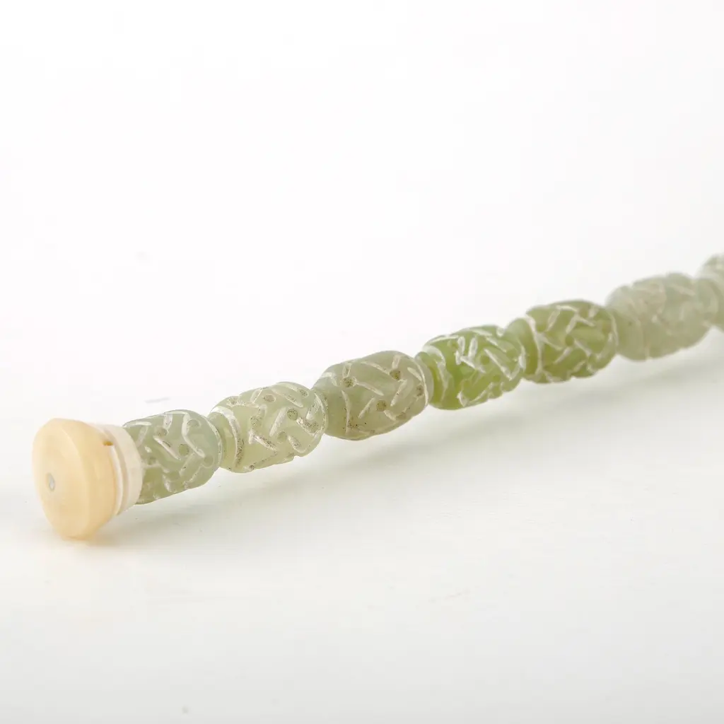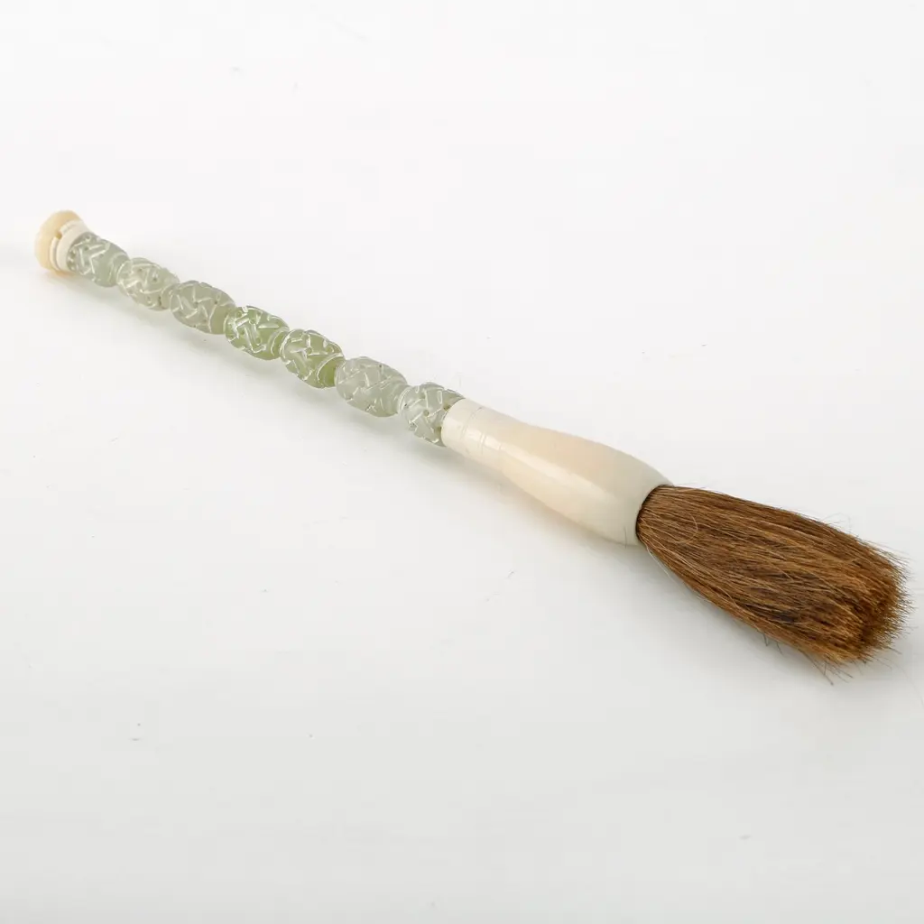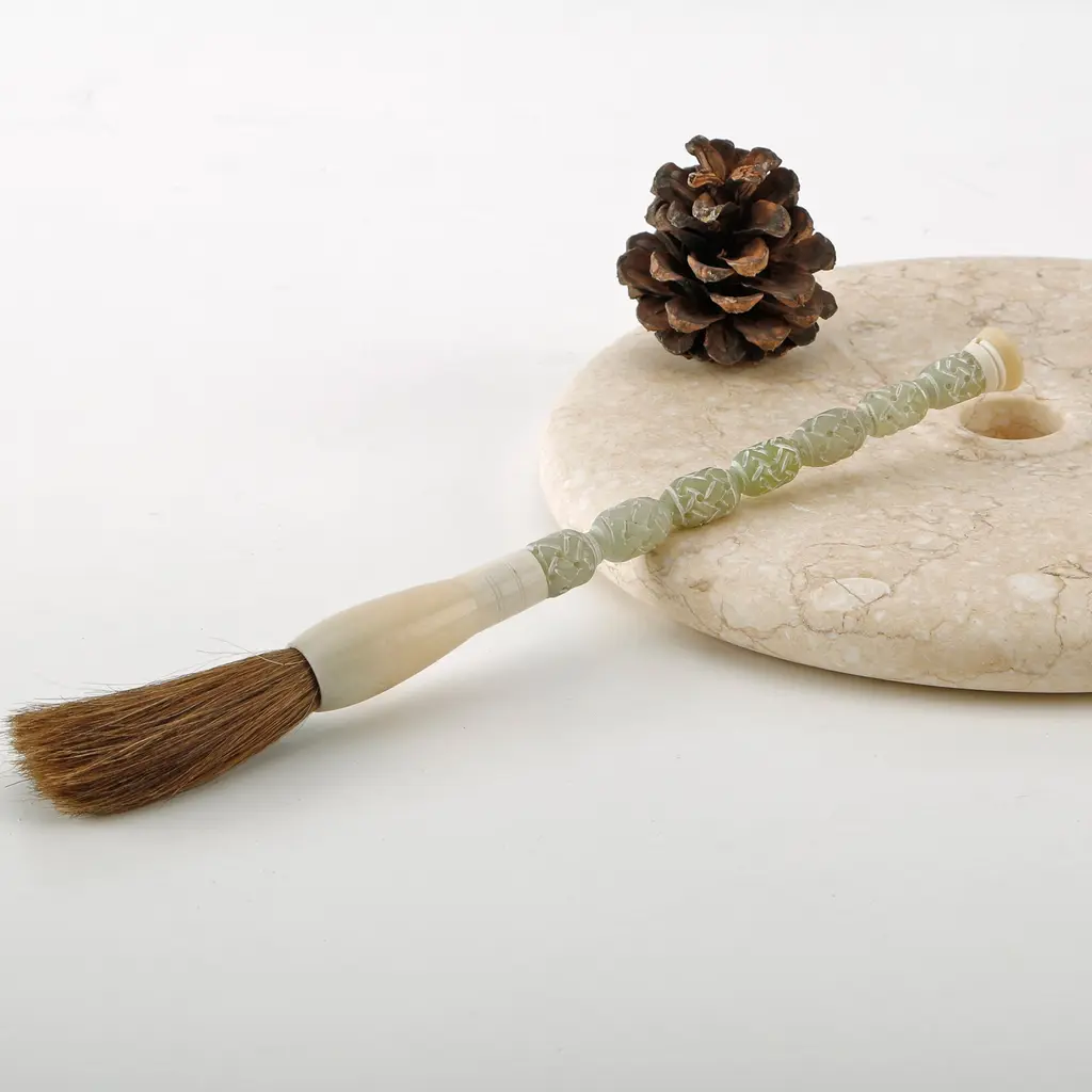 Artissance 11" Green Hand Carved Jade Lucky Pattern Calligraphy Brush - Green