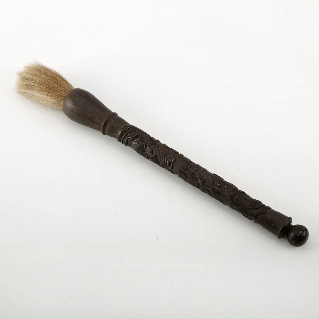Artissance 20" Brown Wooden Calligraphy Brush With Carved Dragon - Brown