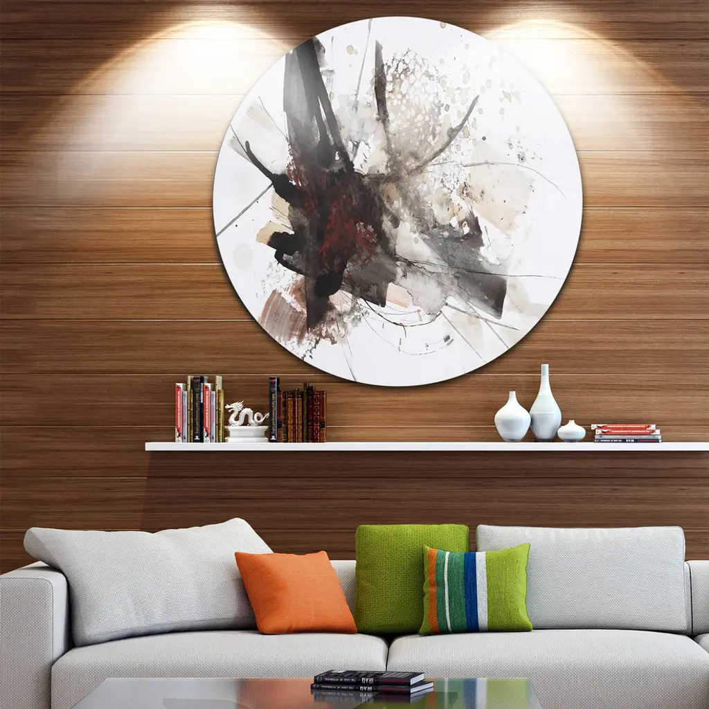 Bring Contemporary Abstraction to your home with this large Circle Metal wall art. This Artistic Splash Metal Artwork makes it the focal point of any room or office. - White Gloss Coating ensures colors are extra vibrant with light reflection.- Aluminum grade Sheet Metal with 1 inch mounting frame on the back giving the illusion that the artwork is floating on the wall..- Mounting Brackets are included along with instructions.- High Quality Digital images are created directly into a glossy aluminum panel producing a stunning and captivating print into the glossy finish of the metal.- Water, Fire and Scratch resistant HD Aluminum panels.- Looks better than any photo paper and guaranteed to last at least 20 years- Easy to clean with a microfiber cloth. Colors are far superior to regular Canvas Art. - Easy to Hang