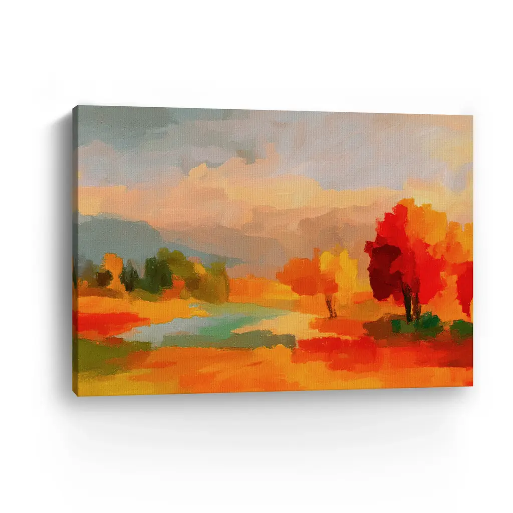 Bring the beauty of autumn indoors with this landscape fall canvas art print that captures the season’s serene charm. The rich hues and tranquil scenery evoke cozy walks through nature, making it a captivating focal point for seasonal décor. Perfect for lovers of fall landscapes and rustic wall art inspiration. Our Gallery Wrap Canvas Prints are proudly assembled with high quality materials in California, USA. Each piece is printed on a thick, archival grade canvas using Giclee technology. It is then hand-stretched by our experienced artisans over solid wood bars, which will not warp over time. The final product is a piece personally crafted for you to confidently display on your wall. Care and Assembly: Ensure that the location of your piece has little to no exposure to heat, sunlight, and moisture. Wipe clean, only if needed. Each piece includes a sawtooth hanger to hang on your wall horizontally.