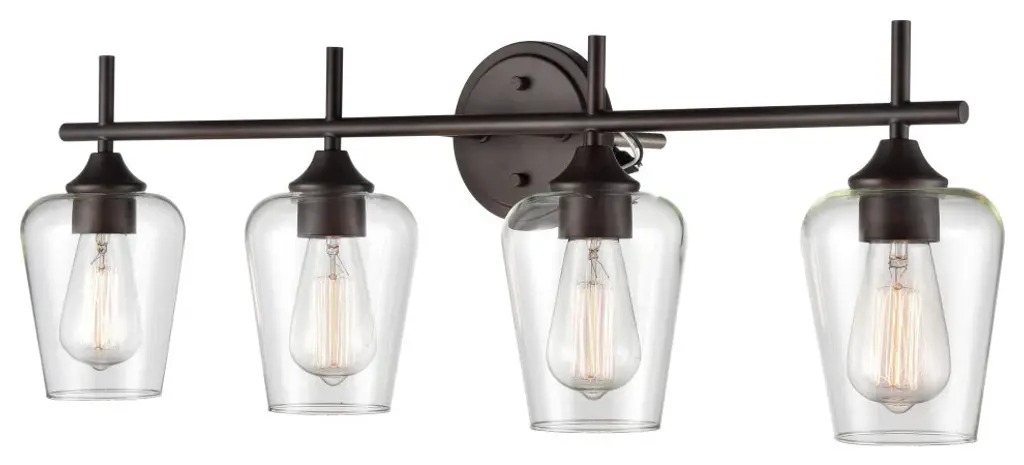Soft curves and sleek, minimalist design are enhanced by goblet style clear glass globes in the Ashford Collection. Available in satin nickel, matte black, and rubbed bronze finishes, each fixture embodies an understated glamour and modern refinement. This fixture uses 100W A Lamps 100W, No bulbs included, UL Listed and Hardwired