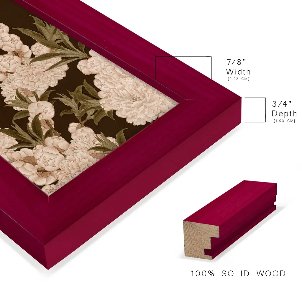 Asian Brocade III -EZ SWITCH Framed Print w/glass-Cherry Red A delightful, framed print. Featuring a solid wood frame with real wood glass. This premium print is giclee quality. In addition, every frame features a removable back and table top stand. This allows you to change your art in the future or to just stand the art on a table for a new look. We are sure you'll enjoy our new series of EZ SWITCH Framed Art. Solid Wood Frame Real Glass Removable / Replaceable Art Built in Tabletop Stand Sizes range from 4x6 up to 12x15 - buy just one or pair them up as sets as you see fit.