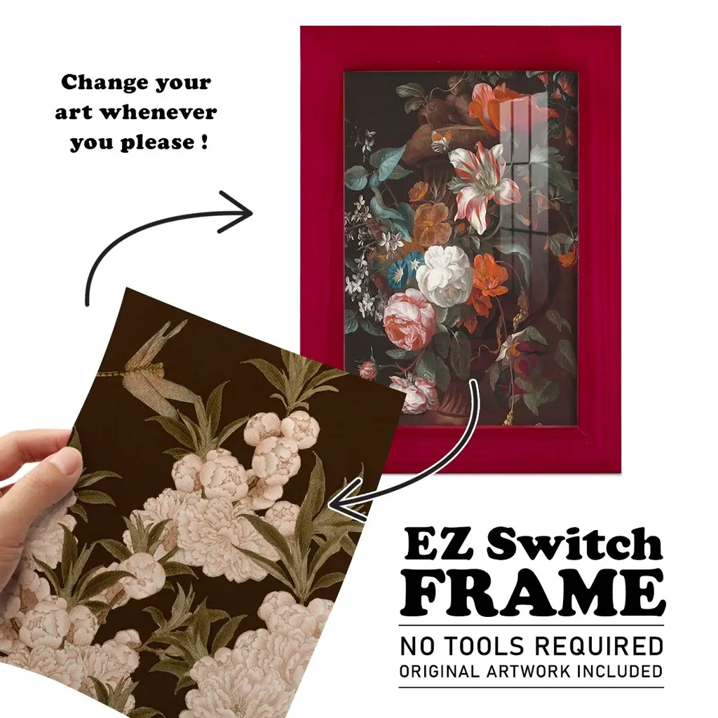 Asian Brocade III -EZ SWITCH Framed Print w/glass-Cherry Red A delightful, framed print. Featuring a solid wood frame with real wood glass. This premium print is giclee quality. In addition, every frame features a removable back and table top stand. This allows you to change your art in the future or to just stand the art on a table for a new look. We are sure you'll enjoy our new series of EZ SWITCH Framed Art. Solid Wood Frame Real Glass Removable / Replaceable Art Built in Tabletop Stand Sizes range from 4x6 up to 12x15 - buy just one or pair them up as sets as you see fit.