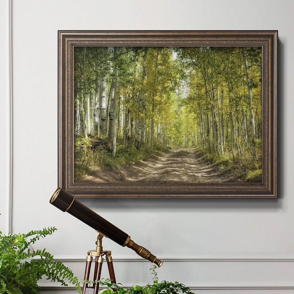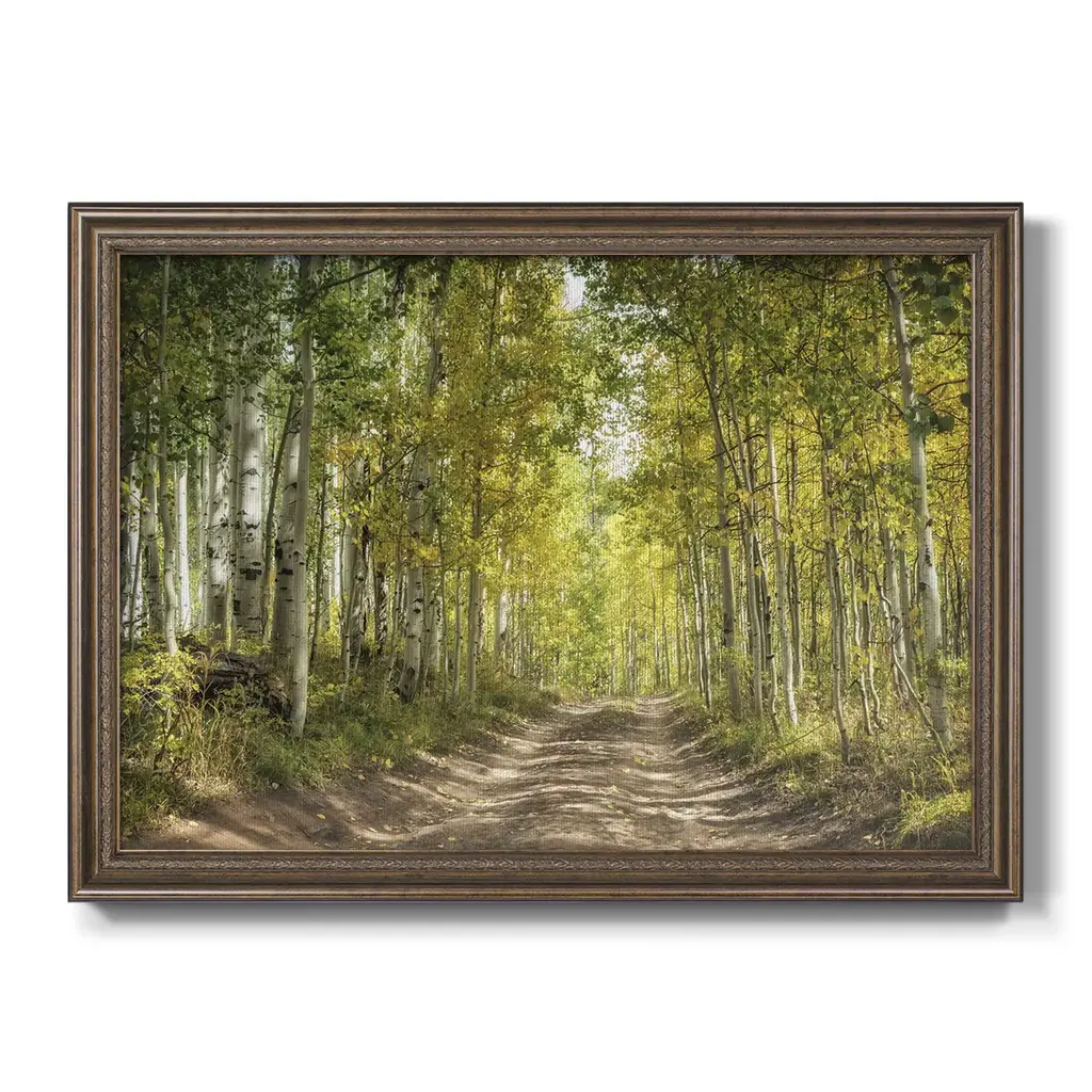 Aspen Drive Premium Framed Canvas- Ready to Hang A Premium Framed Canvas created to last. Framed in distressed wood and available in an array of sizes and colors Featuring a beveled a solid wood stretcher bar, each piece comes ready to hand 3 SIZES AVAILABLE 16''X20'' - Overall Size 18'X27'' - Overall Size 24''x36'' - Overall Size Each piece is made to order. Each piece comes with hanging hardware. Made in the USA Ready to Hang Giclee Paper Print Acrylic Glass Beveled Matt Board