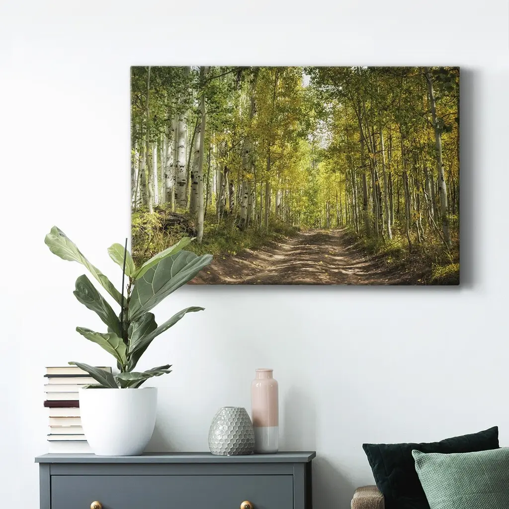 Aspen Drive Premium Gallery Wrapped Canvas - Ready to Hang A premium hand stretched gallery wrapped canvas print created to last. Featuring a beveled a solid wood stretcher bar, each piece comes ready to hand 6 SIZES AVAILABLE 8''X12'' - Overall Size 12''X18'' - Overall Size 18''X27'' - Overall Size 24''x36'' - Overall Size 32''x48'' - Overall Size 40''x60'' - Overall Size Each piece is made to order. Built to Last Each piece comes ready to hang Solid wood stretcher Fade and Water resistant Made domestically