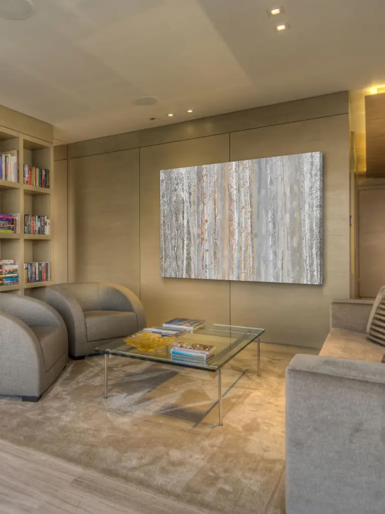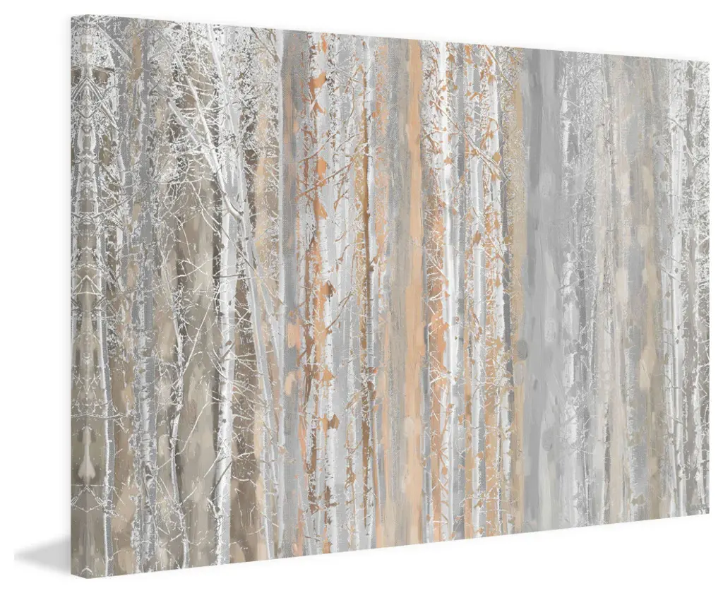 Striking and unique, the "Aspen Forest" Fine Art Canvas Print by Parvez Taj will bring your walls to life. Printed on canvas, this 18 inch wide by 12 inch tall contemporary artwork will make a statement in any living room, dining room, or bedroom.- Fine art canvas print by Parvez Taj- Professionally hand stretched- Gallery wrapped in sustainable, non-warping wood- Arrives ready to hang- Made in the USA- Includes a certificate of authenticity- Artist signature on the front
