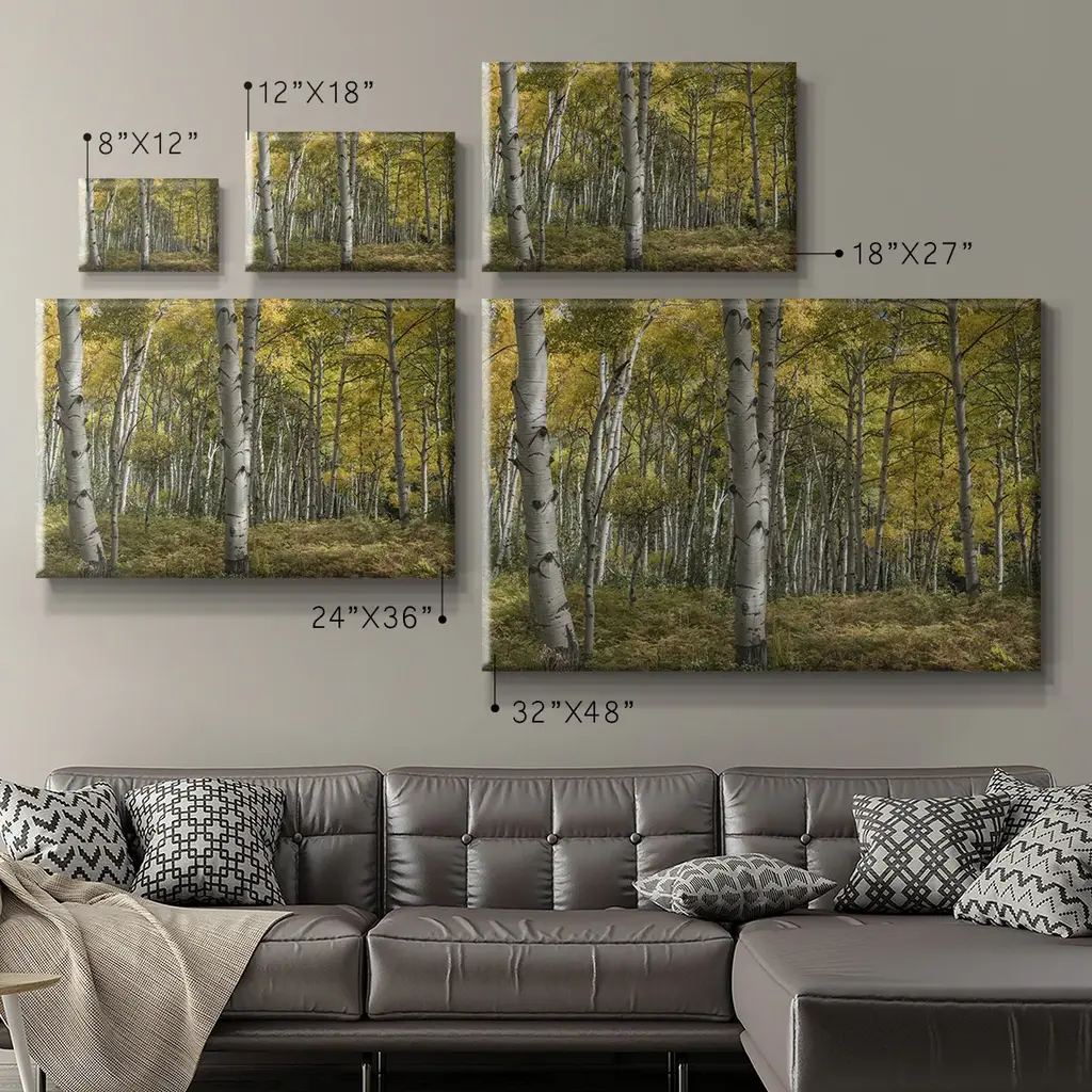 Aspen Grove II Premium Gallery Wrapped Canvas - Ready to Hang A premium hand stretched gallery wrapped canvas print created to last. Featuring a beveled a solid wood stretcher bar, each piece comes ready to hand 6 SIZES AVAILABLE 8''X12'' - Overall Size 12''X18'' - Overall Size 18''X27'' - Overall Size 24''x36'' - Overall Size 32''x48'' - Overall Size 40''x60'' - Overall Size Each piece is made to order. Built to Last Each piece comes ready to hang Solid wood stretcher Fade and Water resistant Made domestically