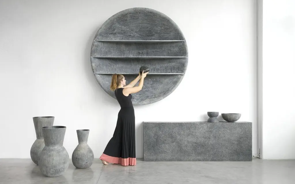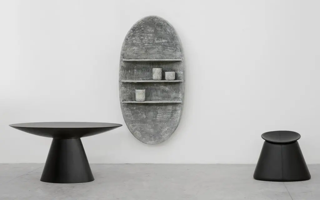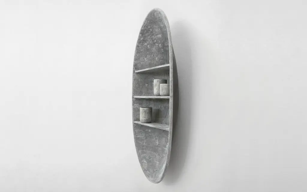 Aspis shelves by ImperfettolabDimensions: Ø 187 x 27 cmMaterials: FiberglassImperfetto LabWho we are ? We are a family.Verter Turroni, Emanuela Ravelli and our children Elia, Margherita and Eusebio.All together, we are separate parts and their Expansion.The laboratory is in the care of Verter.From the sketch on paper he mixes materials, shapes and colours to the definition of the object.His intuitive and visionary research is performed with the complicity, recognition and practical support of his brother Erich.Emanuela is the voice of a vivid and silent work.She connects Imperfettolab with the other and with the rest of the world, respecting its nature and identity.She watches over its wholeness and authenticity.The playful spirit is entrusted to our children.They are the ones who test our works, certify their durability, functionality and enjoyment.We believe it is their expression, after all, that validates and makes our work universal.Since 1992, our thoughts and actions have moved, grown and taken shape in the land of Romagna.Between hills of cherry and olive trees, cultivated plains and piles of recyclable steel and iron.In between, the ancient Roman road via Emilia.A contrasting and mutating landscape that reflects in our furnishing sculptures.Ours is an open space, the times of art and life seamlessly merge.