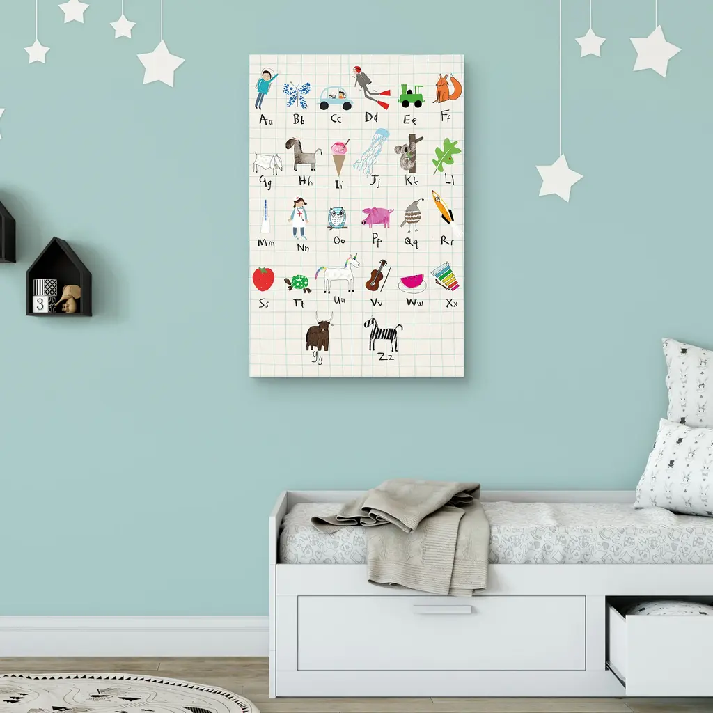 Have you or someone in your circle recently added a new addition to your clan? Well, congratulations are in order, and that little person's going to be running around and chatting up a blue streak before you've had a second to breathe! Create a space in your home that promotes continuous motivation and learning by introducing canvas art prints like Lisa Stickley's Astronaut Alphabet.