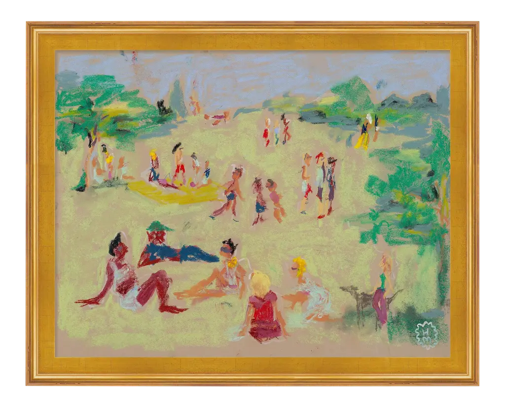 DESCRIPTION: At a Dinner Party by Happy Menocal in Gold Frame, Small Art Print SPECIFICATIONS: Type: Framed Paper. Framed Size (in): 24x20. Orientation: Horizontal. Flush/Float/Matted: Flush. Frame Color: Gold. Hanging Hardware: Picture Perfect. FRAMING: Each art work arrives framed and ready to hang. We use handmade frames with a plexiglass glazing front, because it offers less glare than standard glass. At this time, we only offer framed prints. ARTIST BIO: Happy Menocal is a New York-based artist and creative director. She is known for her spirited illustration style and profligate use of color. Founded in 2012, her studio specializes in personal and corporate event stationery, brand identity, murals and textile design for private clients and hospitality groups.