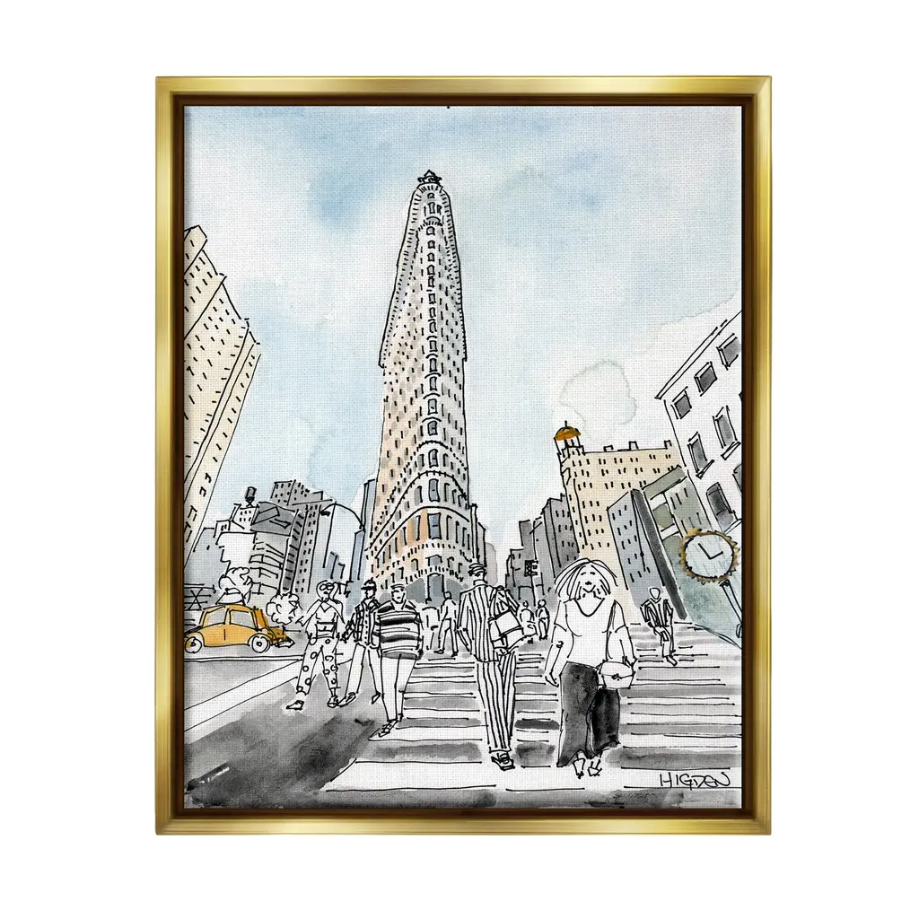 At The Museum & In The Street Diptych By Happy Menocal In Natural Maple Frame, Xs Art Print