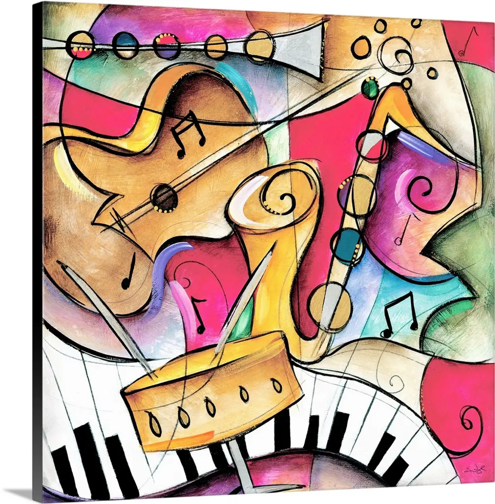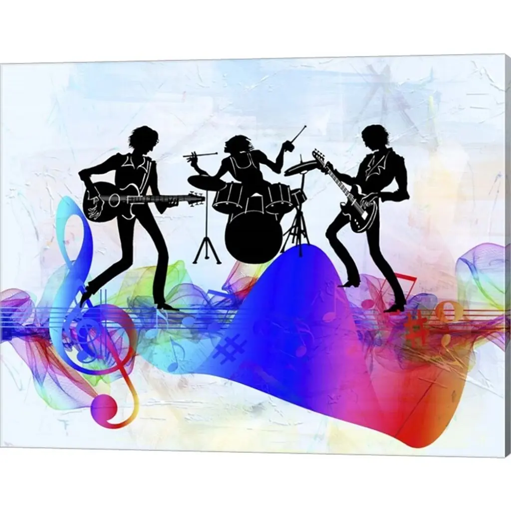 Rock Band by Ata Alishahi is a high quality piece of canvas artwork. The finished size of this piece is 20" X 16", and it has a depth 0.75". There is a UV protective coating over the entire image, and it is ready to hang on your wall with no hardware required.