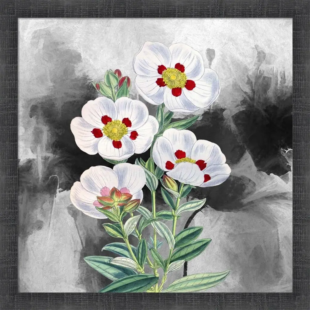 White Flowers 1 by Ata Alishahi is a high quality piece of framed artwork. The finished size of this piece is 17.5" X 17.5". It has a Rustic Grey Distressed frame and is finished with high quality Acrylic Plexiglass.. 100% Satisfaction Guaranteed.