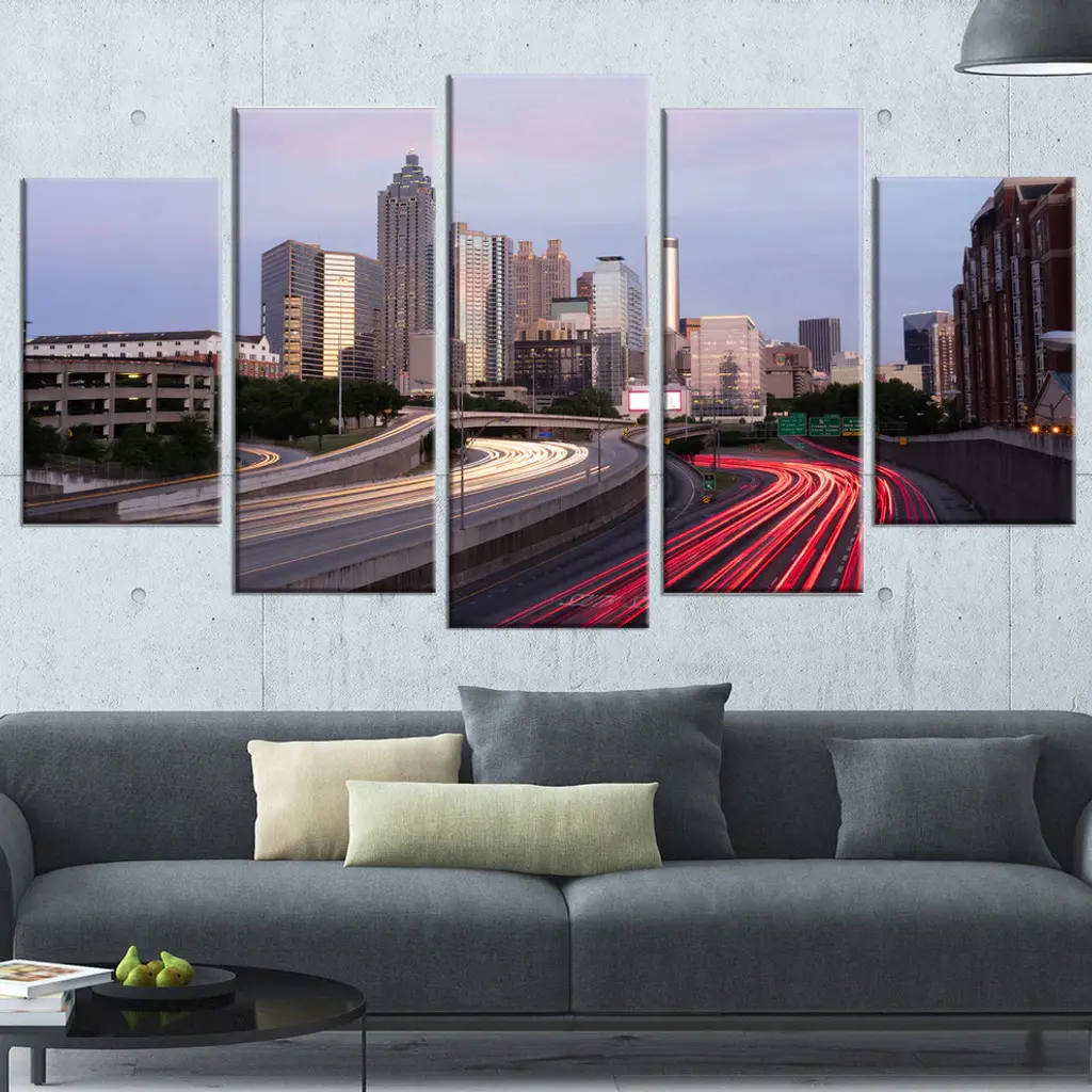 "Atlanta Georgia Rush Hour Traffic At Dusk" Wall Art, 60"x32", 5Panel