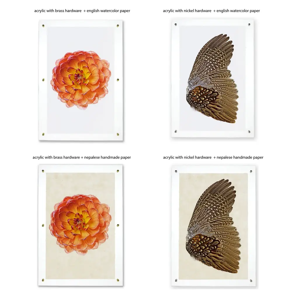 Inspired by the beauty and nature, a study of a butterfly and it's intricacies are expertly crafted. Art pieces can either be unframed (print only), or framed in a choice of archival wood frames. If unframed, a choice of adding a “frameless” leather + steel hanger is available. The added-on hanger is shipped disassembled from the artwork. This hanging kits come complete with everything needed to hang the triptych prints, including easy instructions. No damage is done to the print upon utilizing the hangers.