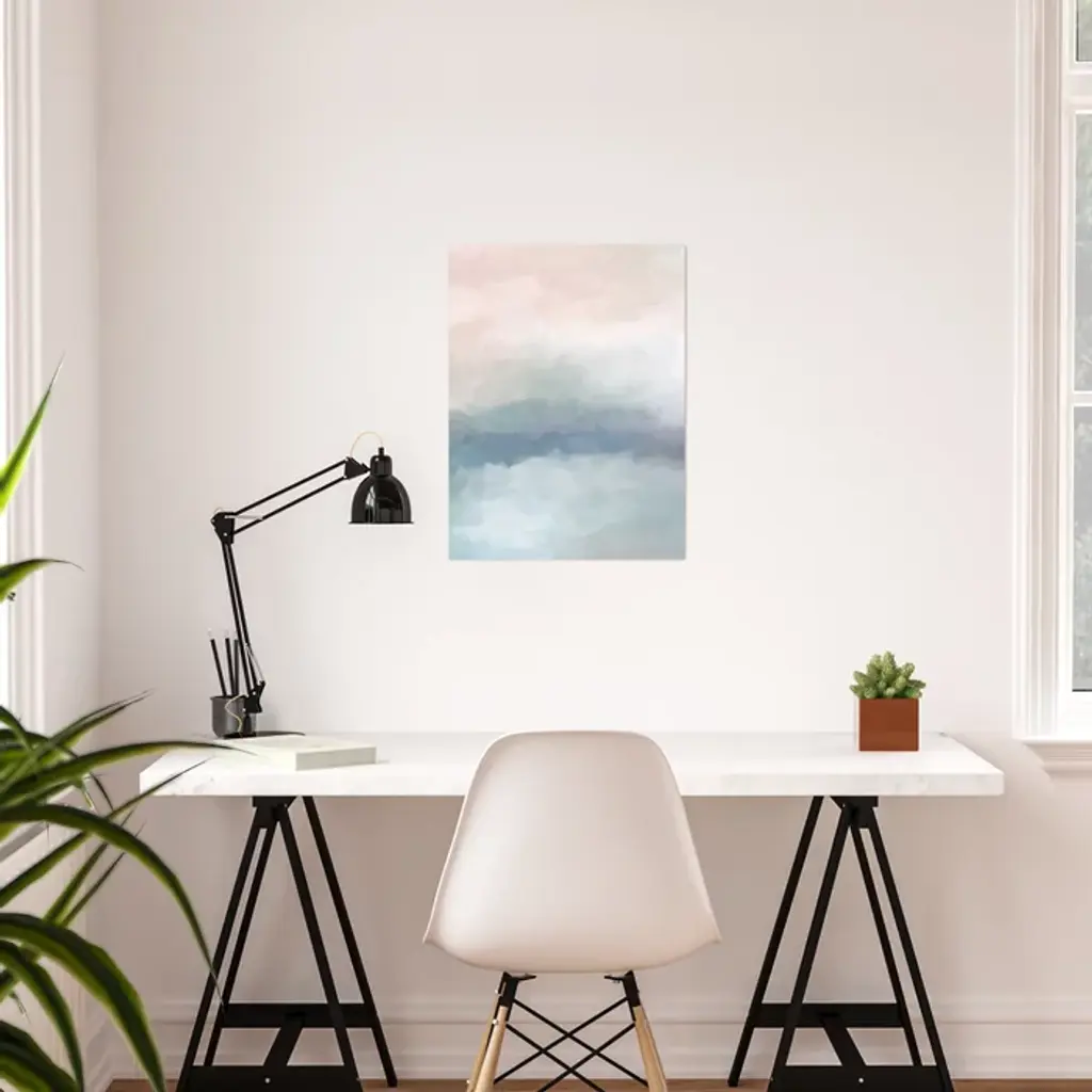 Atlantic Ocean Sunrise Iii - Blush Pink Mint Sky Baby Blue Abstract Sky Art Water Clouds Painting Poster