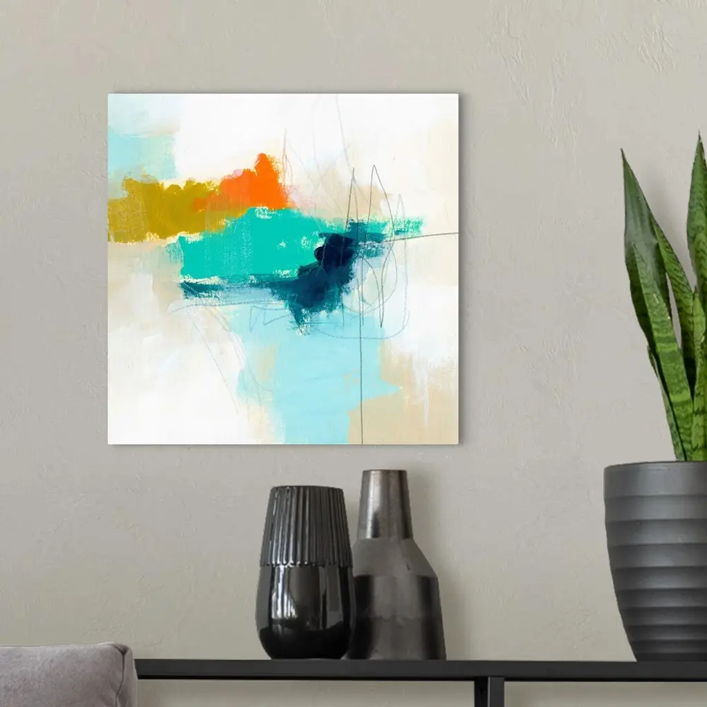Contemporary abstract artwork using light colors.