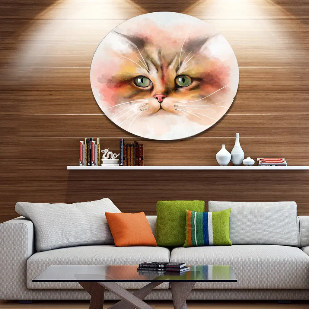 Bring Contemporary Abstraction to your home with this large Circle Metal wall art. This Attractive Brown Cat Watercolor Metal Artwork makes it the focal point of any room or office. - White Gloss Coating ensures colors are extra vibrant with light reflection.- Aluminum grade Sheet Metal with 1 inch mounting frame on the back giving the illusion that the artwork is floating on the wall..- Mounting Brackets are included along with instructions.- High Quality Digital images are created directly into a glossy aluminum panel producing a stunning and captivating print into the glossy finish of the metal.- Water, Fire and Scratch resistant HD Aluminum panels.- Looks better than any photo paper and guaranteed to last at least 20 years- Easy to clean with a microfiber cloth. Colors are far superior to regular Canvas Art. - Easy to Hang